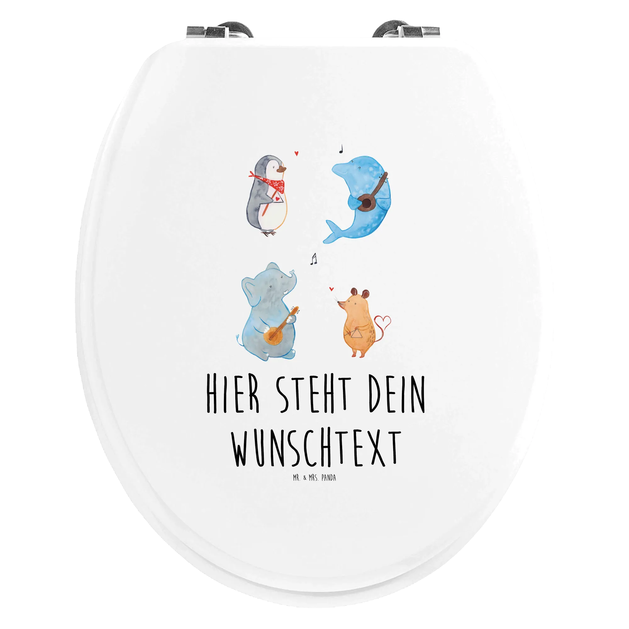 Entdecke den perfekten Begleiter für dein Badezimmer – den personalisierten WC Sitz mit dem fröhlichen Big Band Motiv von Mr. & Mrs. Panda! Dieser einzigartige Toilettendeckel ist nicht nur ein praktisches Accessoire, sondern bringt auch Farbe und Freude in dein Zuhause. Mit süßen Tiermotiven, die Musik machen, wird jeder Toilettengang zu einem unterhaltsamen Erlebnis! Der Pinguin, die Maus, der Delfin und der Elefant tanzen und spielen in einem bunten Musikensemble – perfekt für alle Musikliebhaber und Tierfreunde.