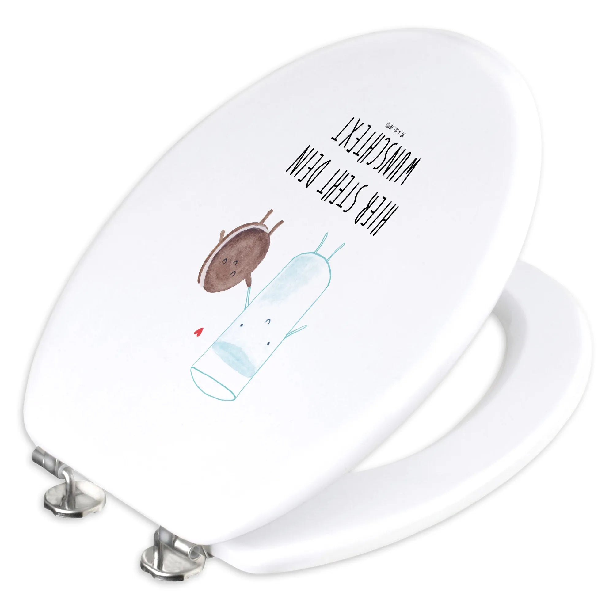 Wenn du auf der Suche nach dem perfekten Geschenk für eine liebe Person bist, dann ist der personalisierte WC Sitz mit dem bezaubernden Motiv Milch & Keks aus der Small World Kollektion von Mr. & Mrs. Panda genau das Richtige!