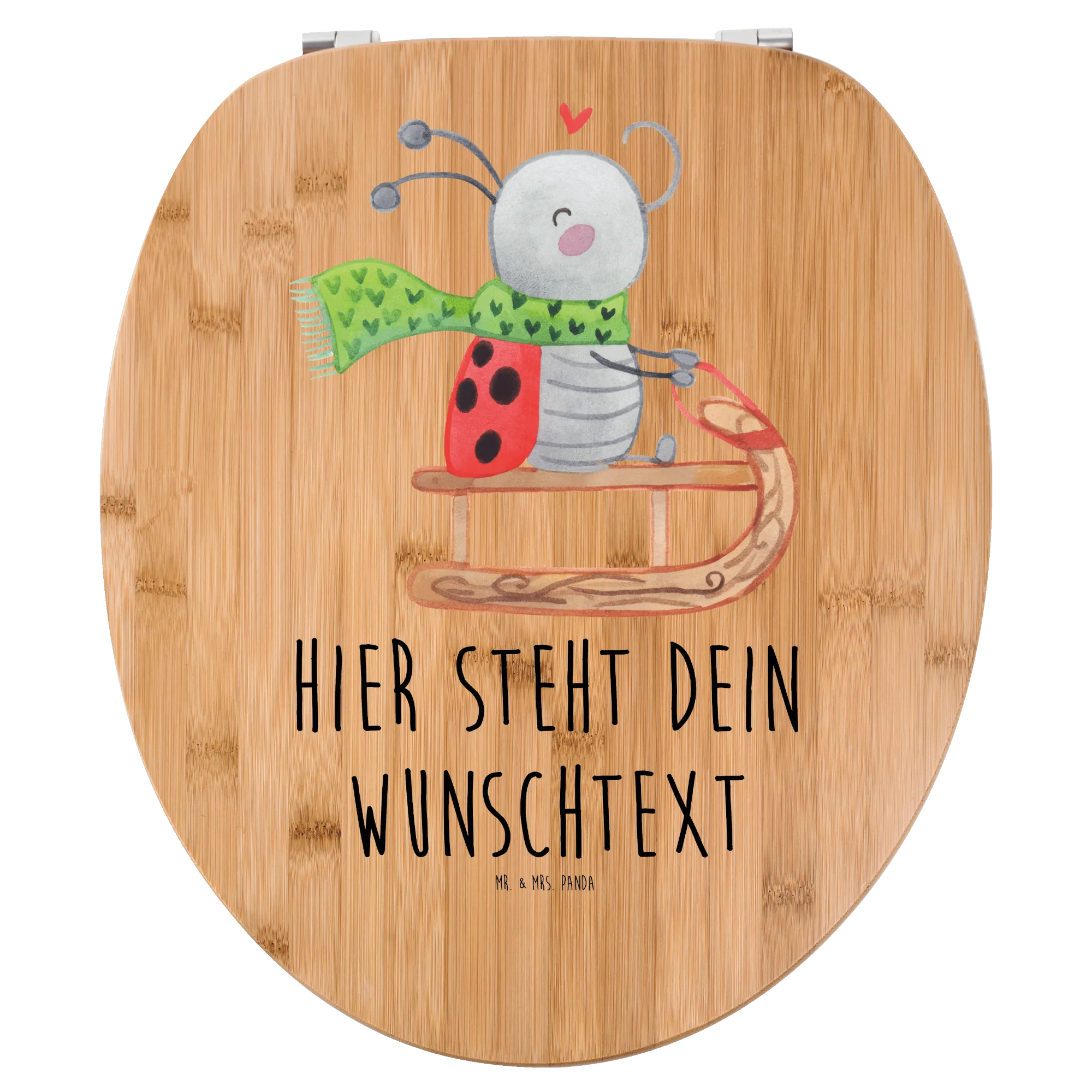 Die personalisierte WC-Sitzplatte von Mr. & Mrs. Panda mit dem fröhlichen Motiv "Smörle Rodeln" ist das perfekte Geschenk für alle, die die Winterzeit lieben! Wenn du nach einer witzigen und praktischen Idee suchst, um deinem Badezimmer einen Hauch von Freude zu verleihen, dann ist dieser personalisierte Toilettendeckel genau das Richtige für dich. Der hübsche Marienkäfer Smörle, der mit seinem grünen Schal auf einem Schlitten durch die Winterlandschaft flitzt, zaubert ein Lächeln in jedes Gesicht und sorgt für heitere Stimmung. Ob für die eigenen vier Wände oder als Geschenk für Freunde oder Familie, diese Klobrille ist ein echter Hingucker.