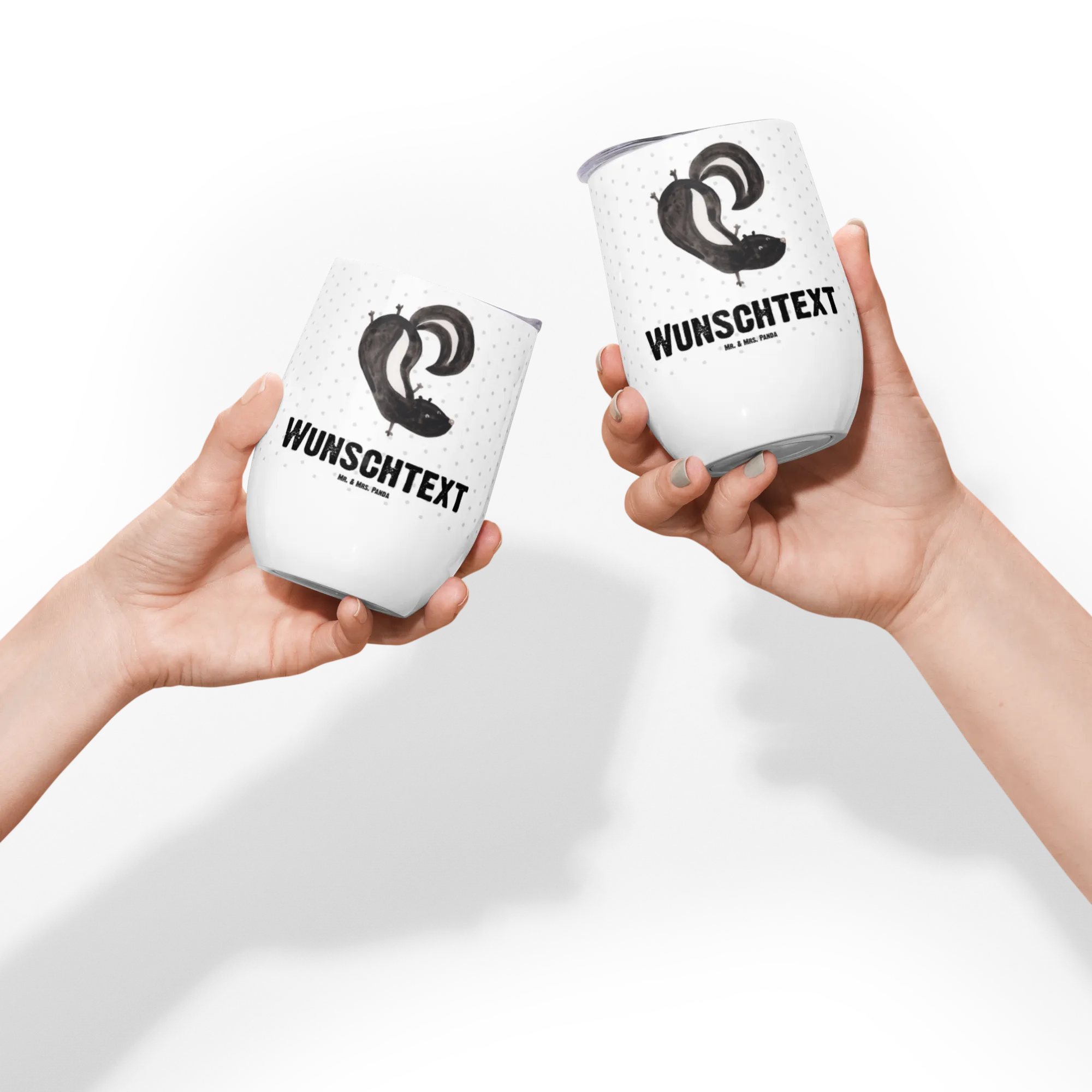 Ob für heiße Schokolade im Winter oder einen kühlen Rosé im Sommer – dieser Weinbecher ist die ideale Wahl für alle, die das Besondere suchen. Schenke Freude und setze ein strahlendes Lächeln auf die Gesichter Deiner Liebsten mit diesem passenden Geschenk aus der Stinktier-Kollektion, entworfen von Mr. & Mrs. Panda.