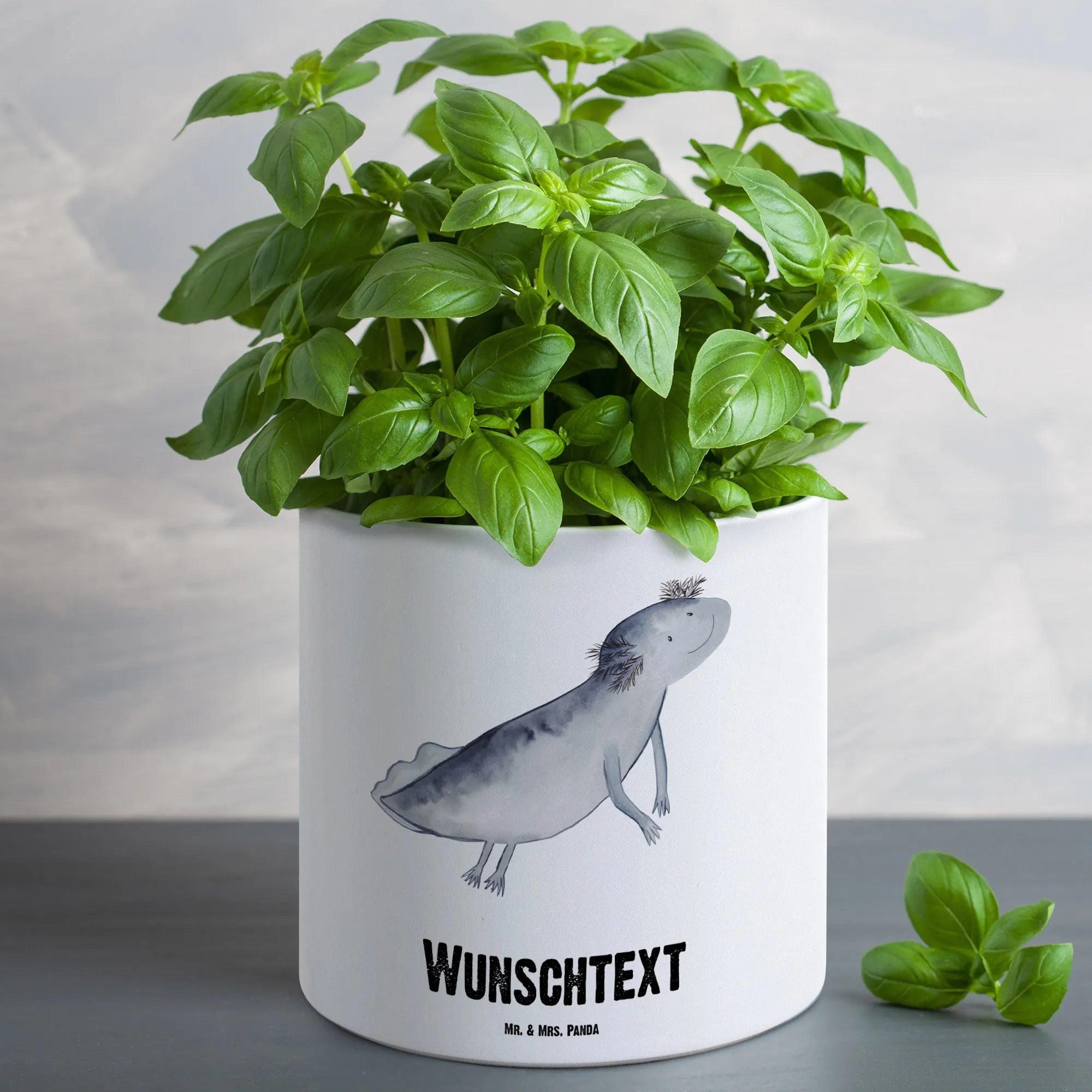 Personalisierter XL Blumentopf Axolotl schwimmt