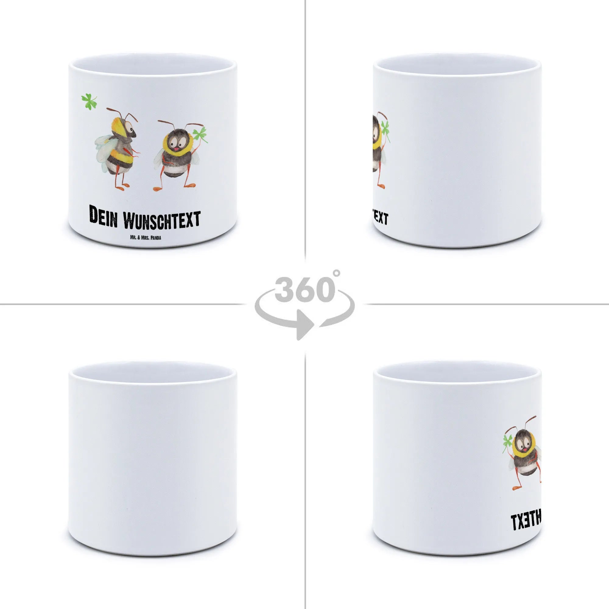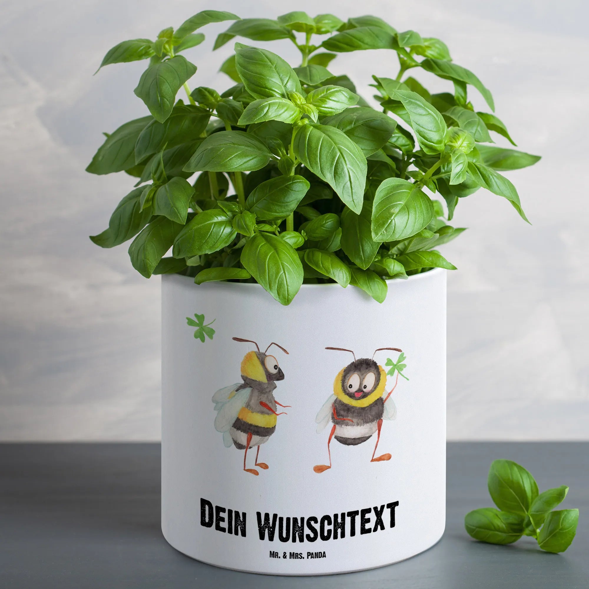 Der Blumentopf lässt sich individuell mit deinem Wunschnamen und einem persönlichen Text verzieren. Stellen dir vor, wie schön es ist, einen solchen Topf, voll mit Kräutern oder Blumen, auf dem Balkon, der Terrasse oder der Fensterbank prunken zu sehen. Das liebevolle Design mit zwei niedlichen, anthropomorphen Bienen, die Glück und Freude ausstrahlen, macht ihn zum idealen Geschenk für Frauen, Freunden und Partnern.