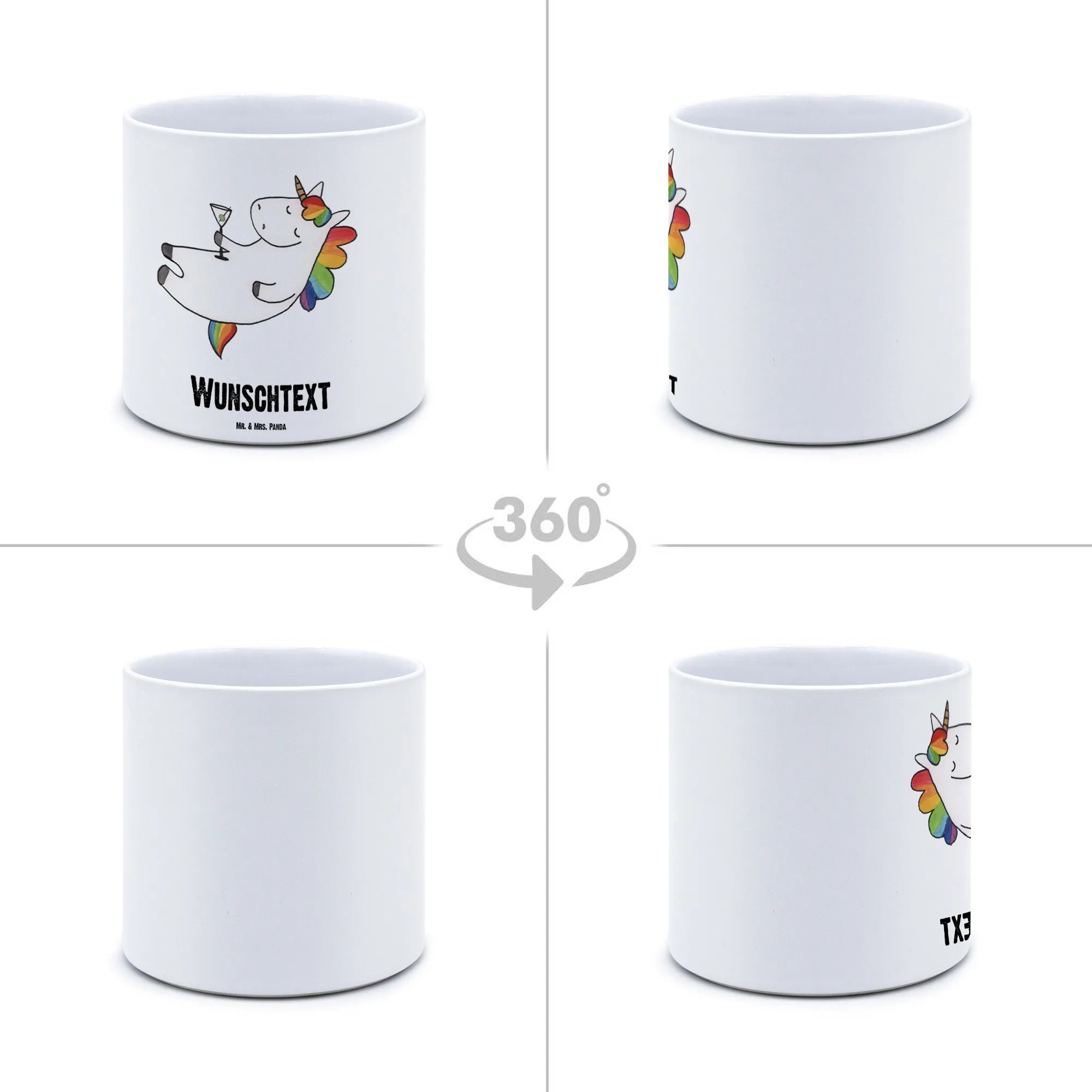 Die Einhorn - Kollektion von Mr. & Mrs. Panda vereint eine Vielzahl von niedlichen Einhorn-Motiven, die alle von Mrs. Panda handgezeichnet wurden. Die Kombination aus witzigen Sprüchen und bezaubernden Designs macht unsere Produkte zur idealen Wahl für jeden Einhorn-Liebhaber. Hol dir also noch heute deinen personalisierten XL Blumentopf Einhorn Cocktail und bringe ein bisschen Glitzer in dein Leben oder das Leben eines Freundes!