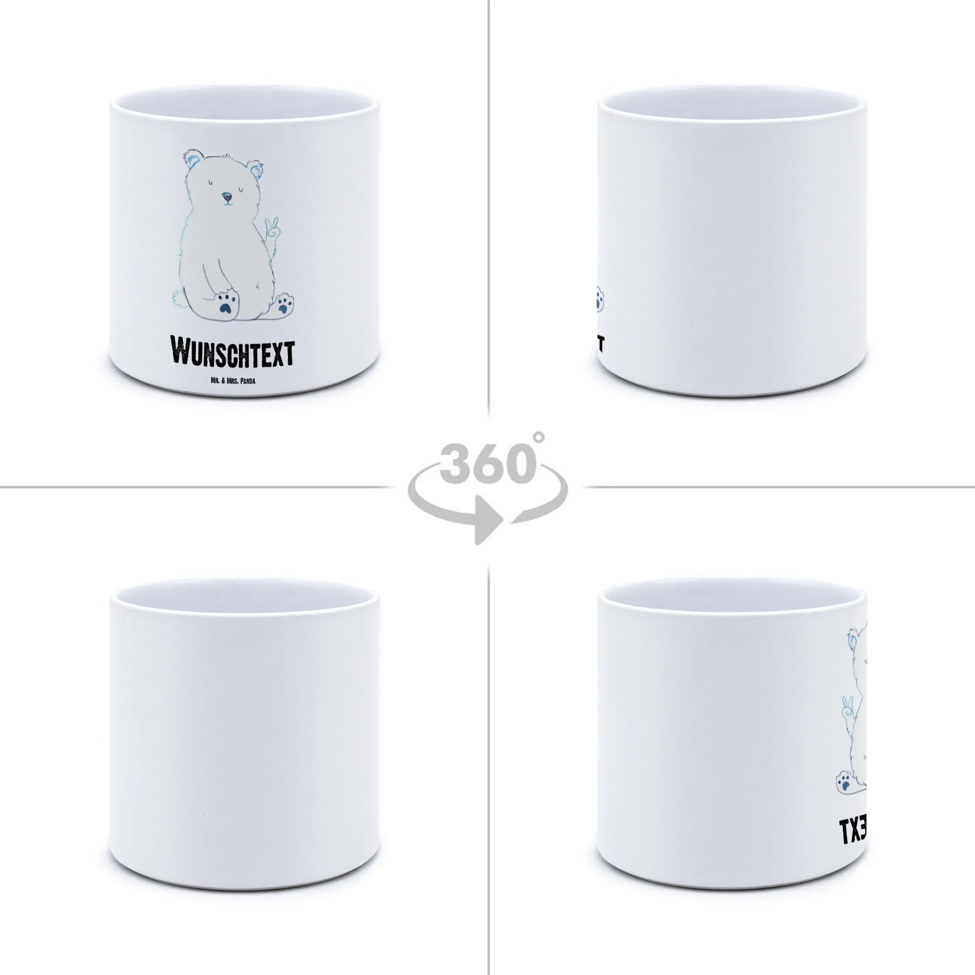 Der personalisierte XL Blumentopf Eisbär Faul von Mr. & Mrs. Panda ist das perfekte Geschenk für alle, die Bären und Pflanzen lieben!
