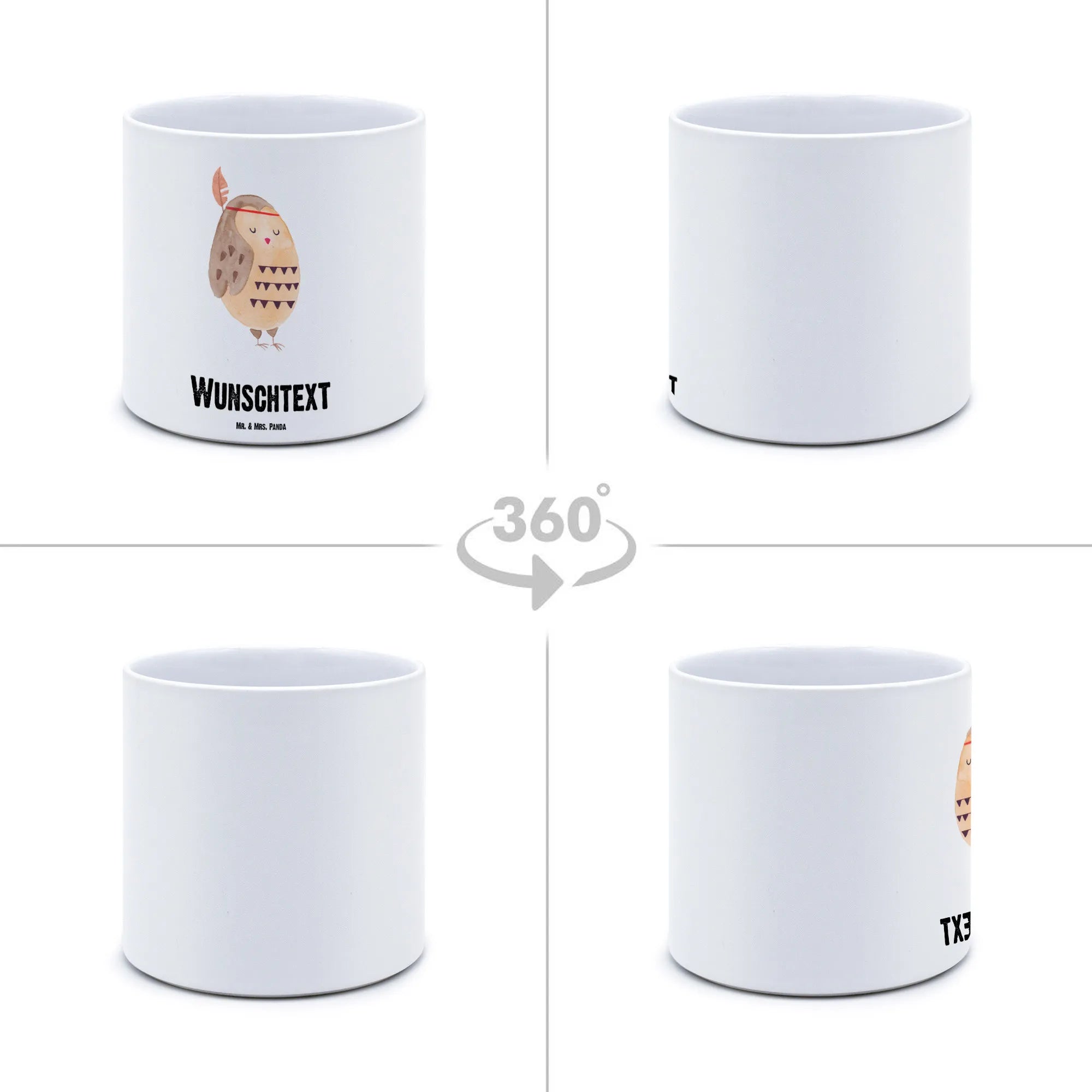 Überrasche deine Liebsten mit unserem personalisierten XL Blumentopf mit dem fröhlichen Eulen-Motiv Federschmuck aus der Eulen-Kollektion von Mr. & Mrs. Panda! 🌟