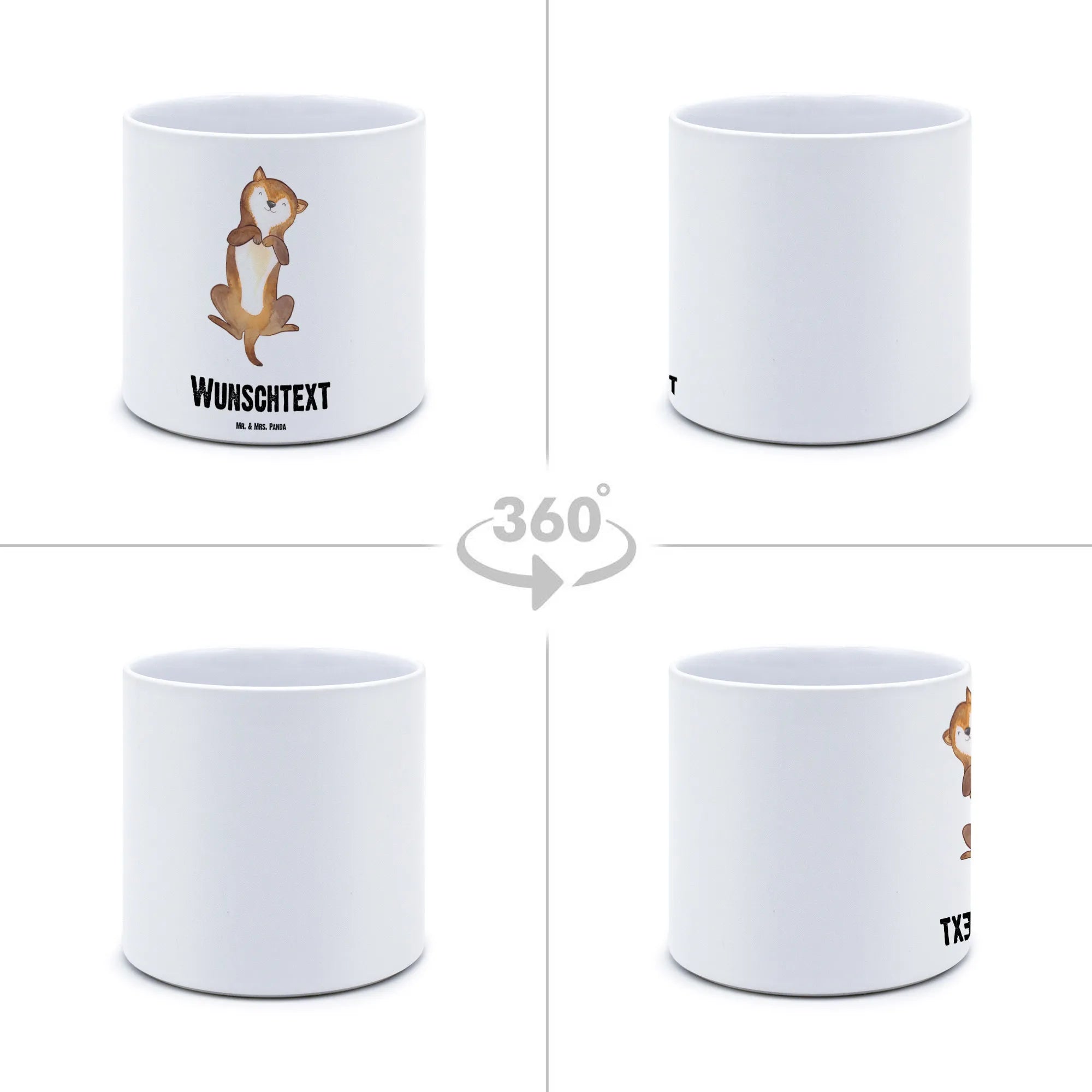 Hol Dir den personalisierten XL Blumentopf Hund Bauchkraulen von Mr. & Mrs. Panda und erfreue das Herz eines lieben Menschen.