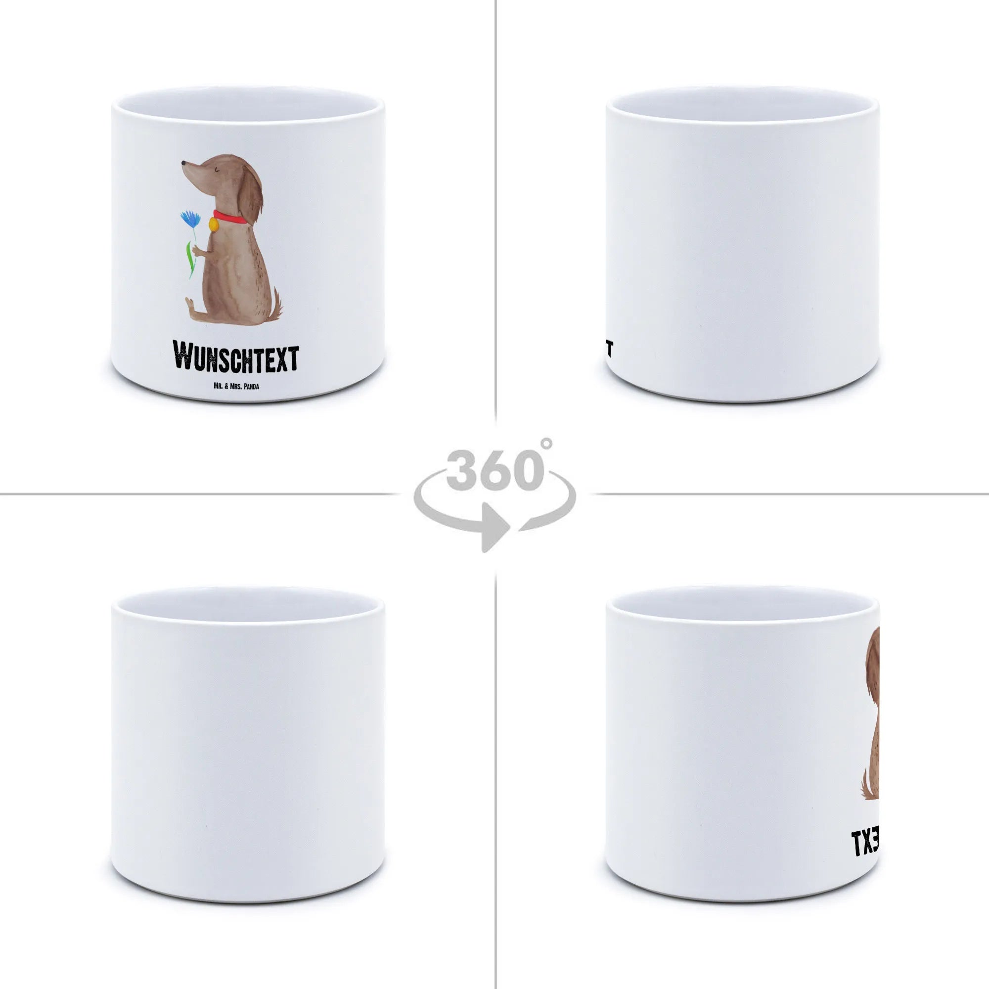 Der personalisierte XL Blumentopf von Mr. & Mrs. Panda ist das perfekte Geschenk für alle Hundeliebhaber und -besitzer! Mit seinem charmanten Motiv einer süßen Hündin und einer Blume im Fell bringt dieser Pflanztopf Freude und Stil in jedes Zuhause. Ob für die Fensterbank, den Balkon oder den Garten – dieser Blumentopf aus hochwertiger glänzender Keramik ist ideal für Pflanzen aller Art.