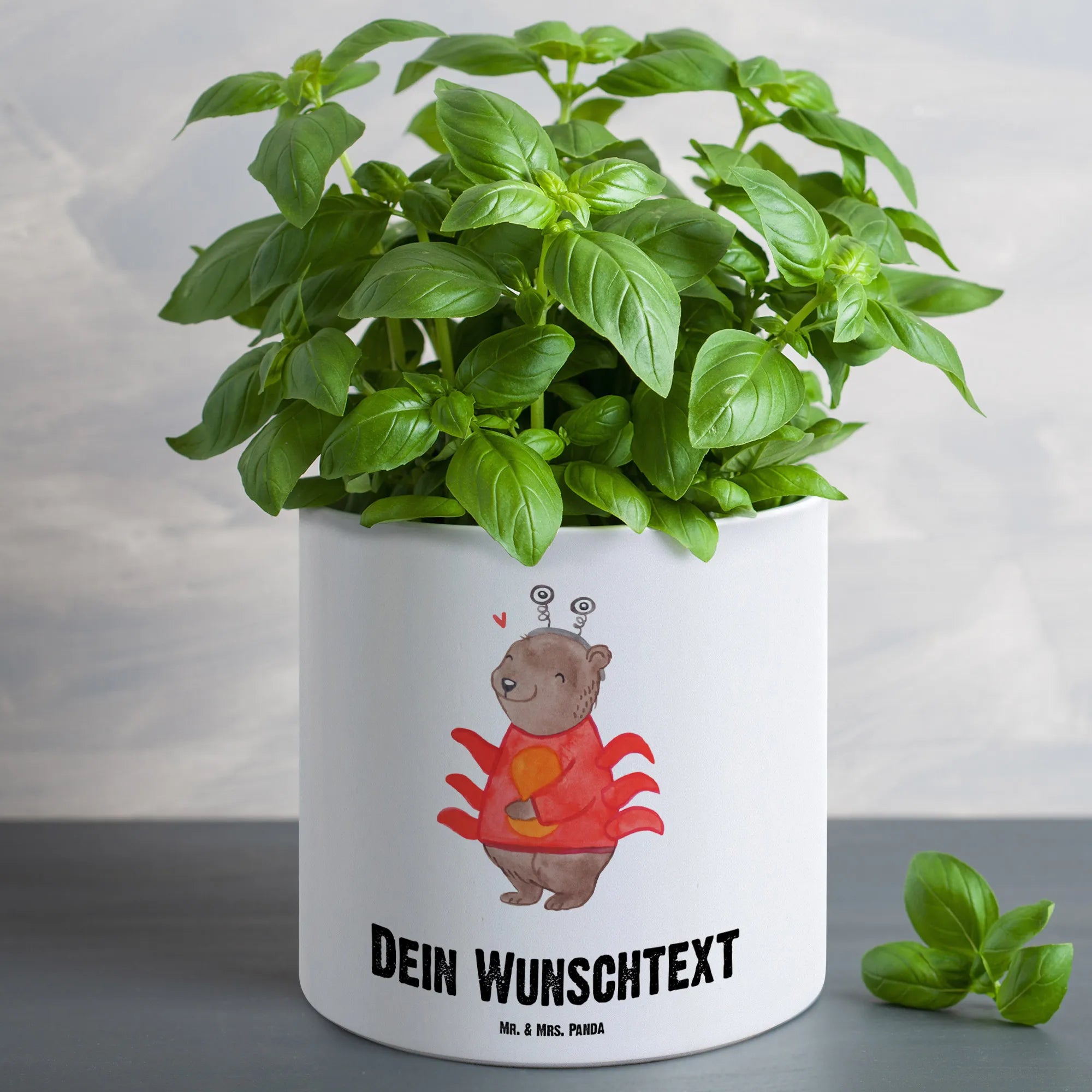 Du suchst das perfekte Geschenk für einen Krebs-Geborenen? Dann ist der personalisierte XL Blumentopf mit dem hübschen Krebs-Motiv aus der Mr. & Mrs. Panda Kollektion genau das Richtige! Dieser stilvolle und verspielte Blumentopf lässt die Herzen von Sternzeichen-Liebhabern höher schlagen. Mit dem Slogan 'Krebs: Sanft wie der Mond, tief wie das Meer.' bringt er nicht nur Farbe in jeden Raum, sondern auch eine liebevolle Botschaft mit.