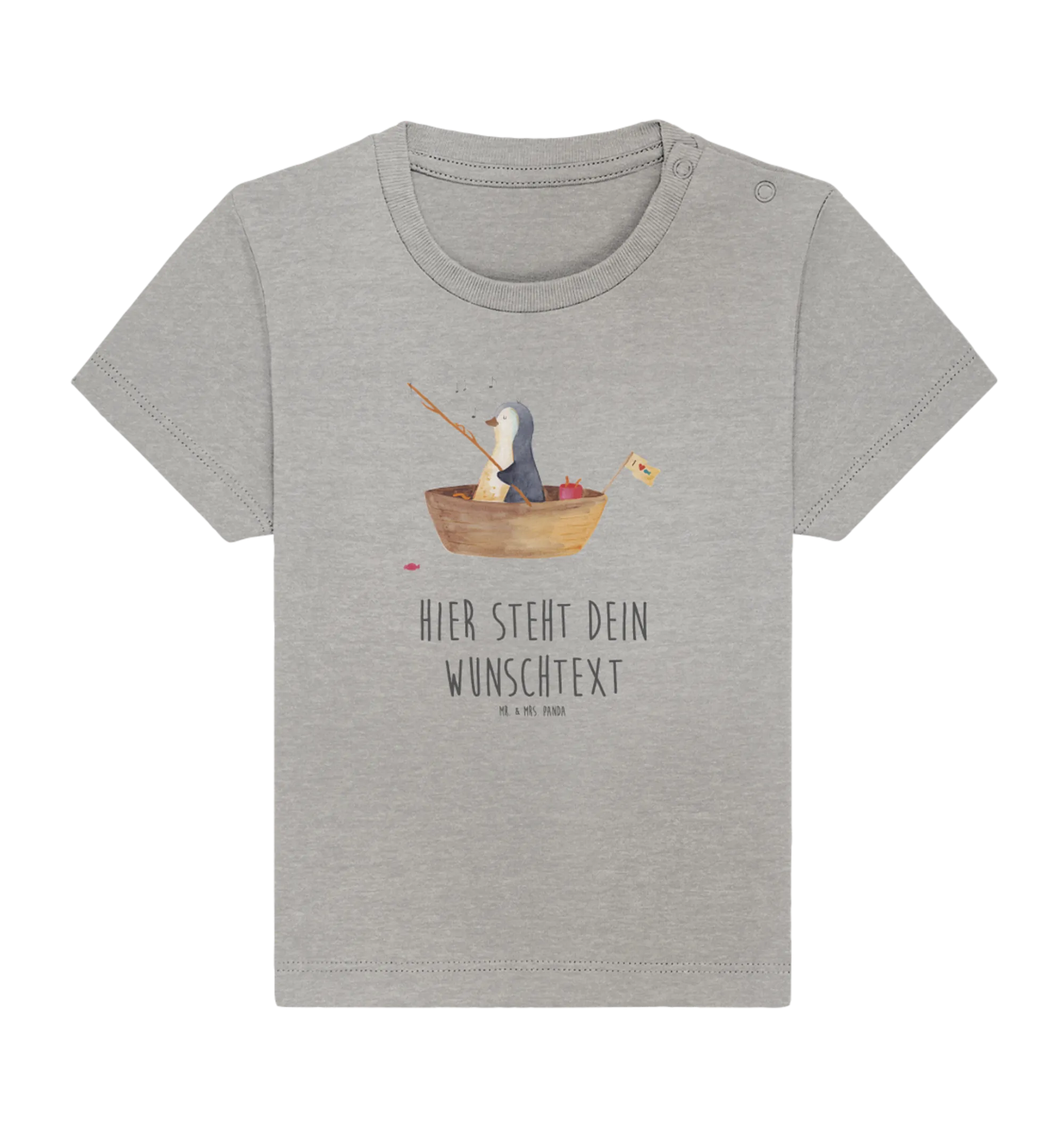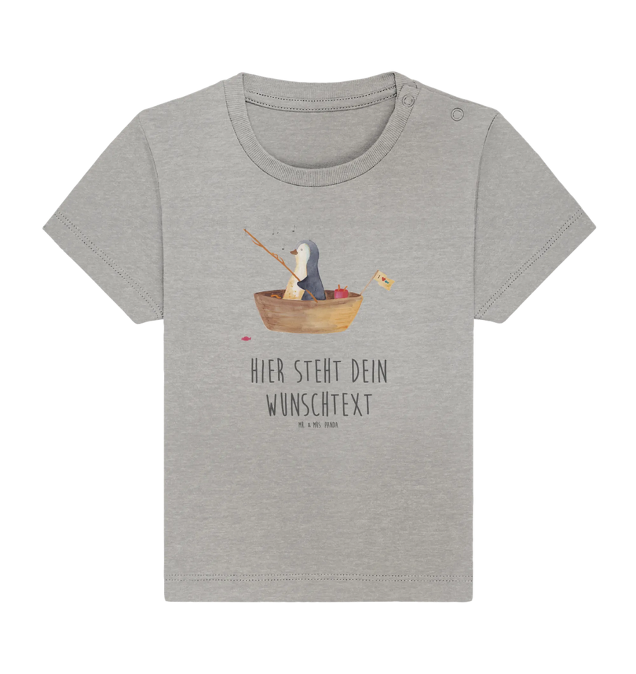 Personalisiertes Baby Shirt Pinguin Angelboot - 12. - 18. Monat - Heather Grey