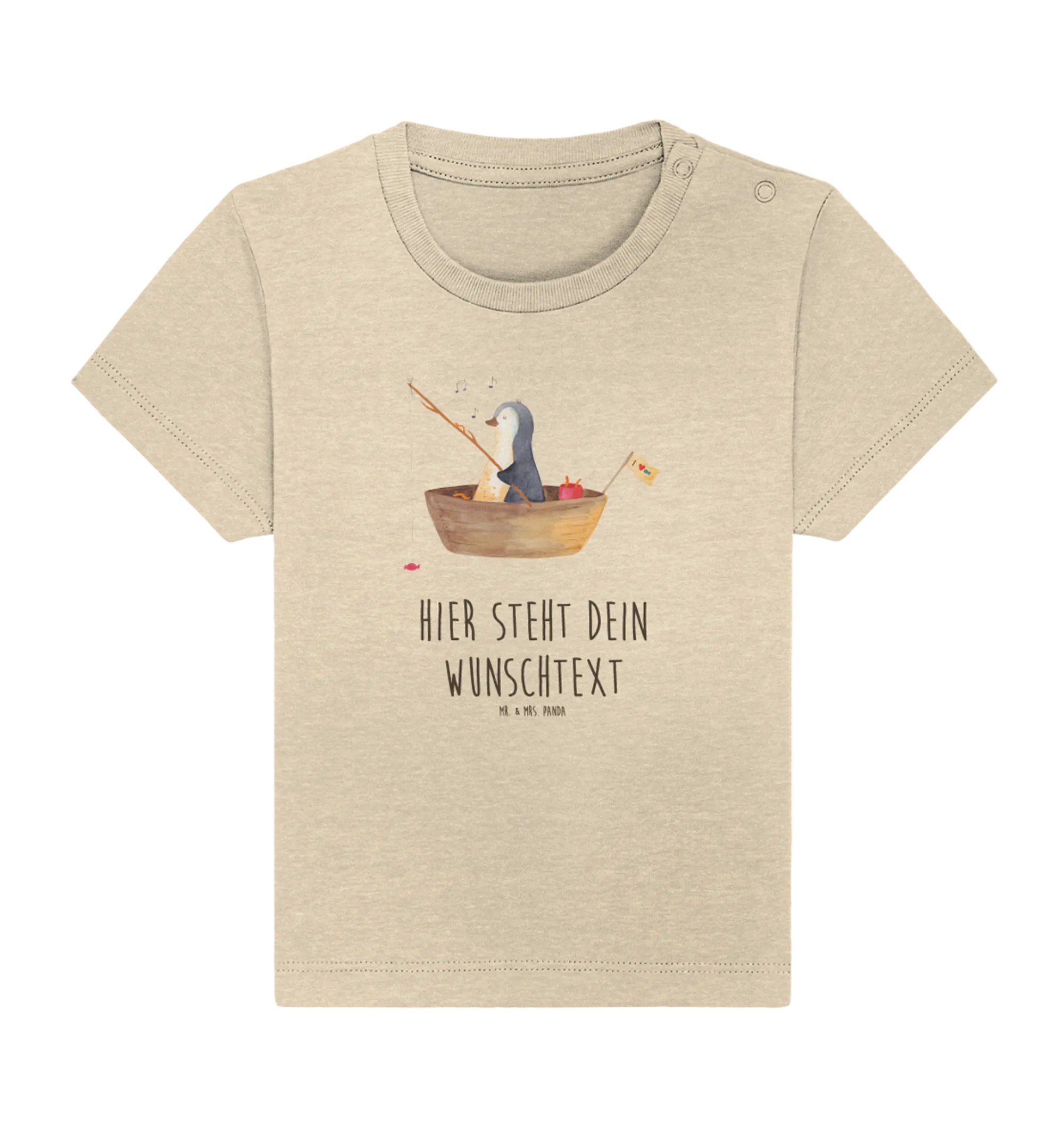 Das personalisierte Baby T-Shirt mit dem zauberhaften Motiv Pinguin Angelboot von der Pinguin-Kollektion ist das perfekte Geschenk für kleine Abenteurer und ihre Eltern!