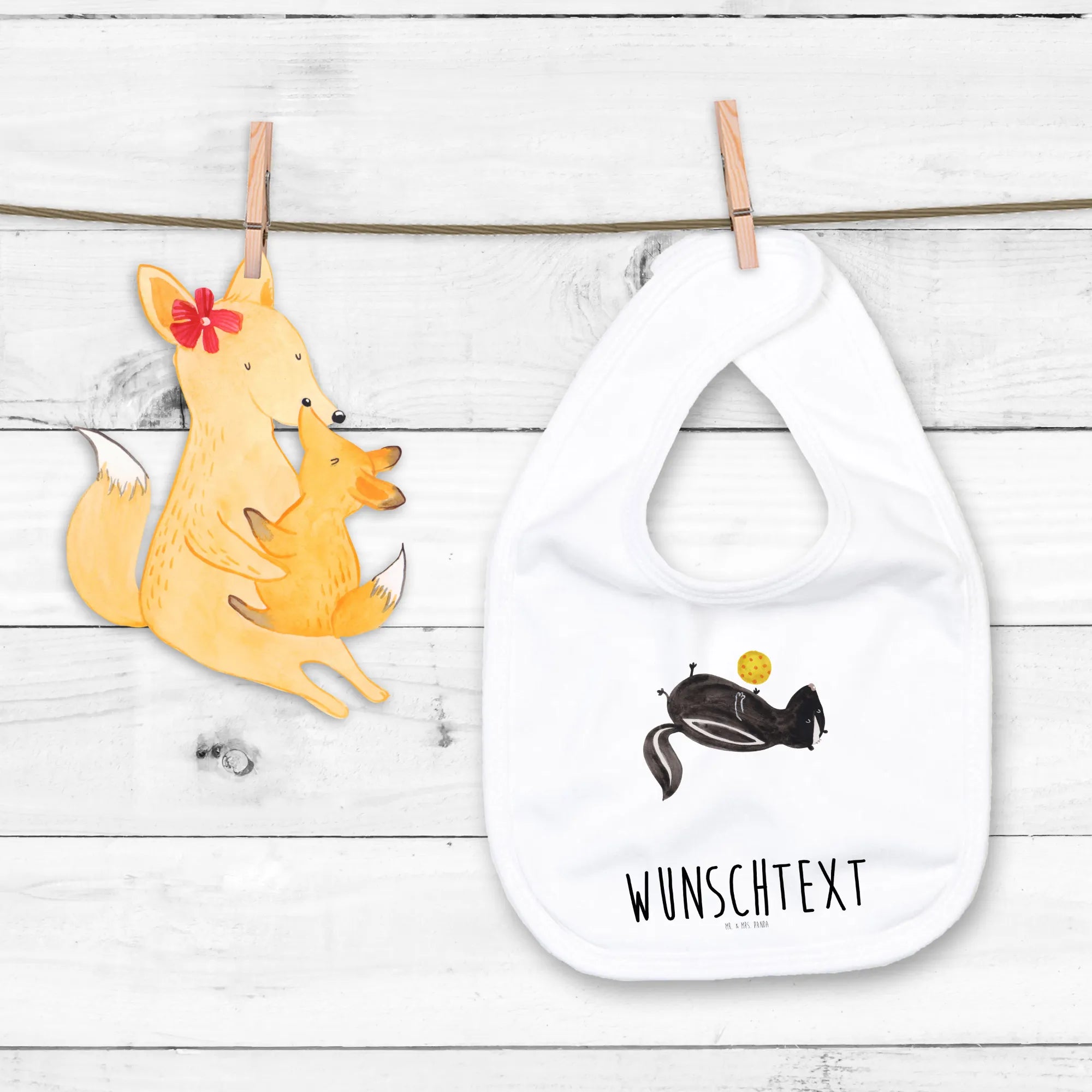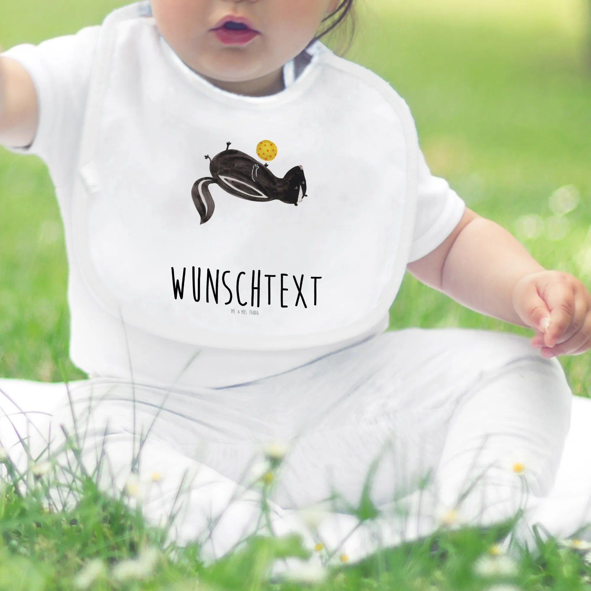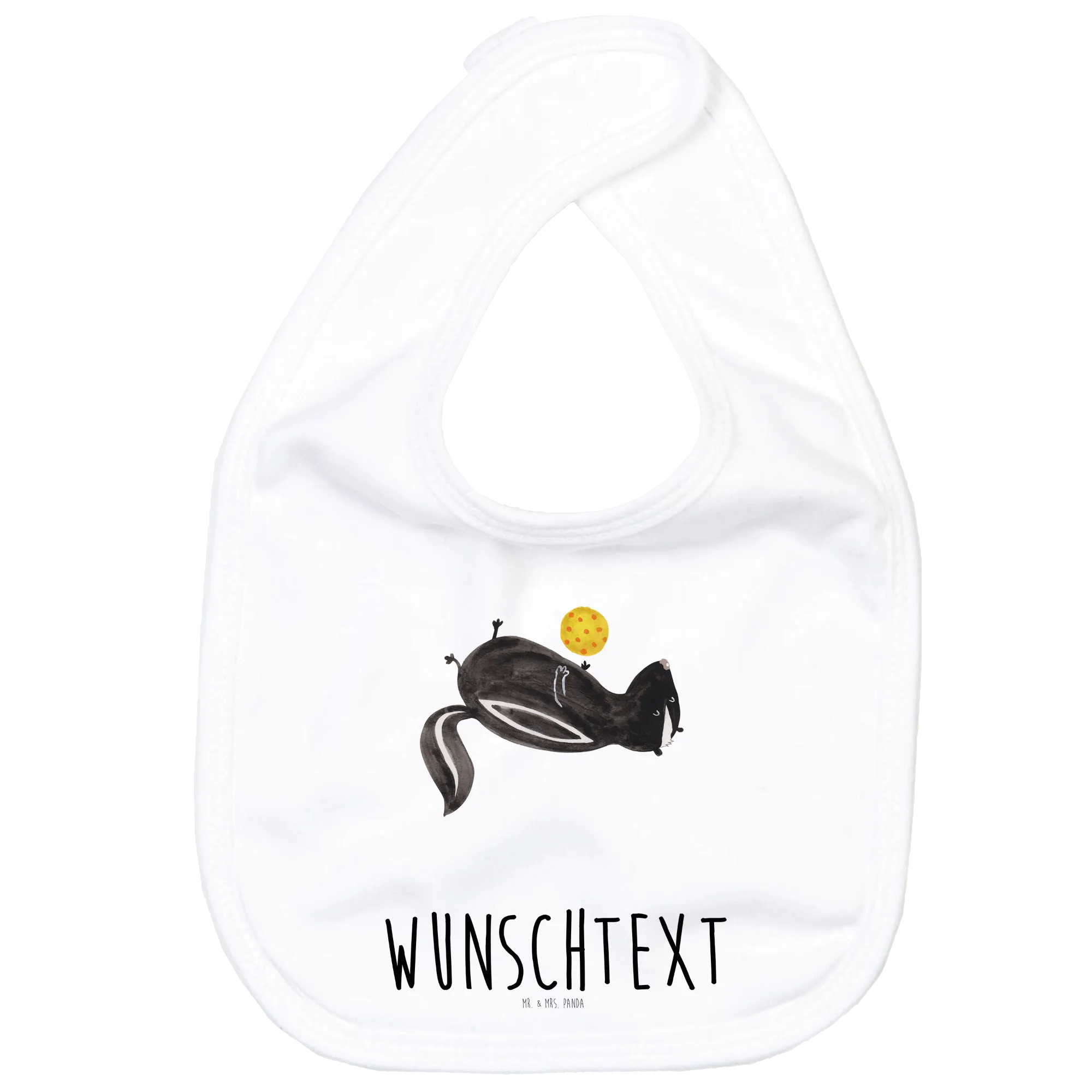 Das personalisierte Babylätzchen mit dem fröhlichen Stinktier Ball aus der Stinktier-Kollektion von Mr. & Mrs. Panda ist das perfekte Geschenk zur Geburt oder zur Babyparty. Du suchst nach einem besonderen Babygeschenk, das sowohl praktisch als auch persönlich ist? Dann ist dieses Lätzchen genau das Richtige für dich!