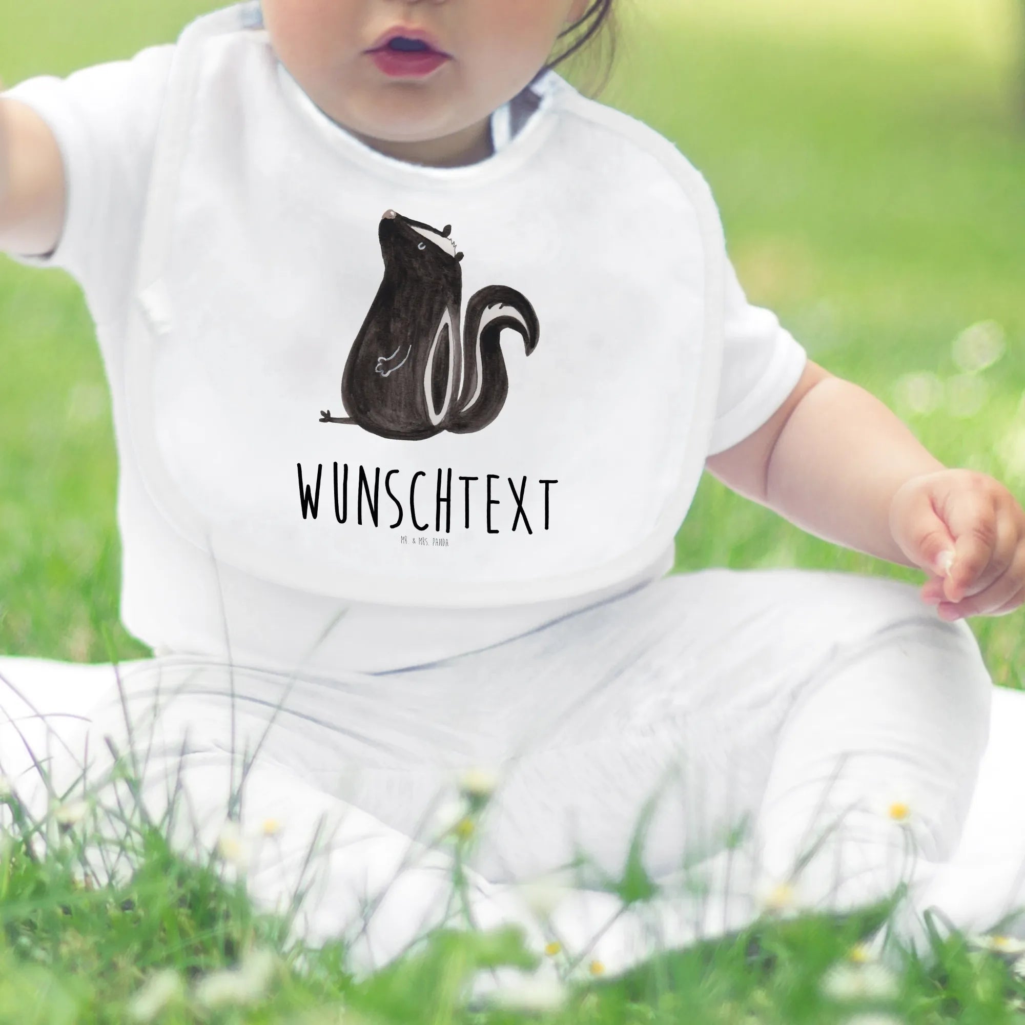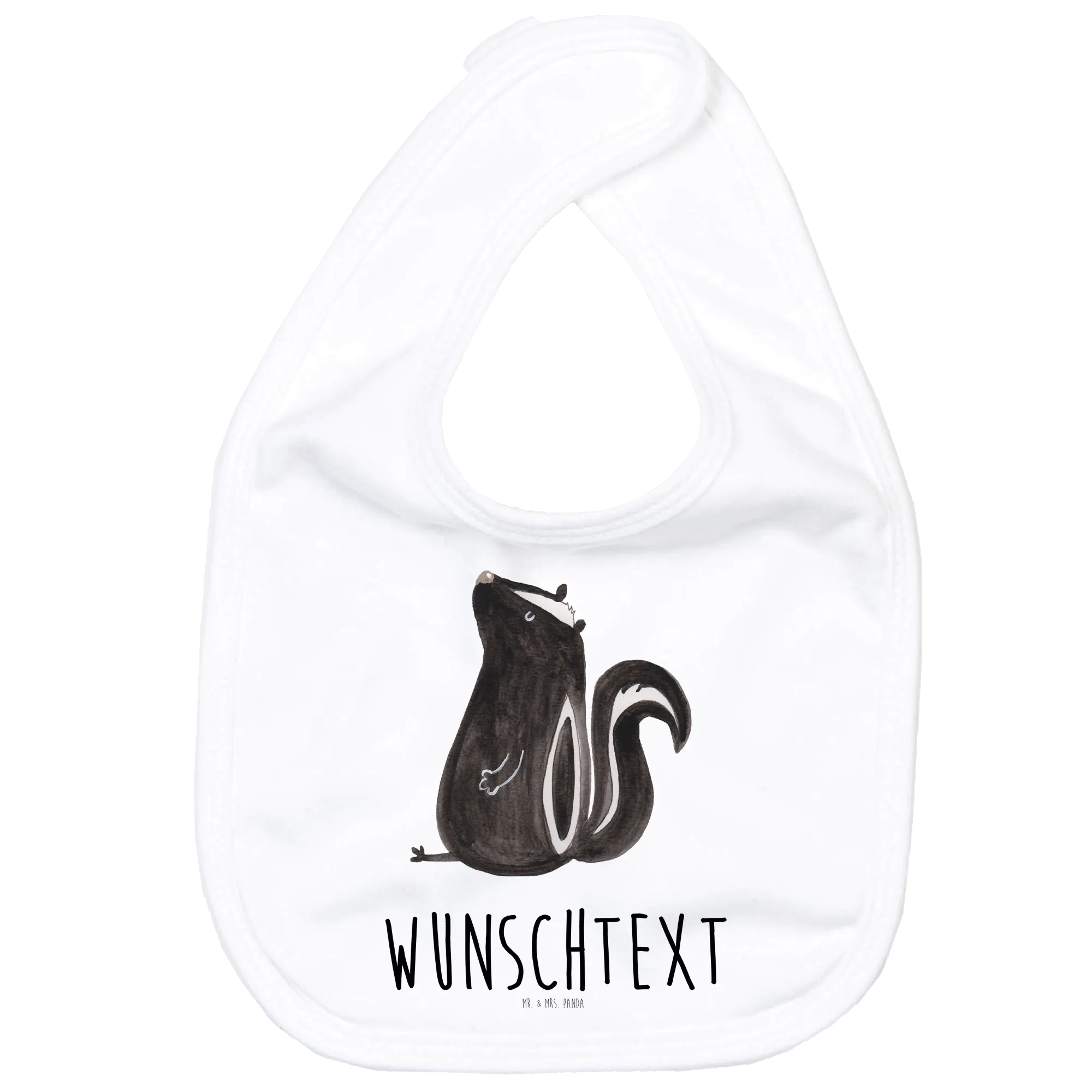 Personalisiertes Babylätzchen Stinktier sitzend – Mr. & Mrs. Panda