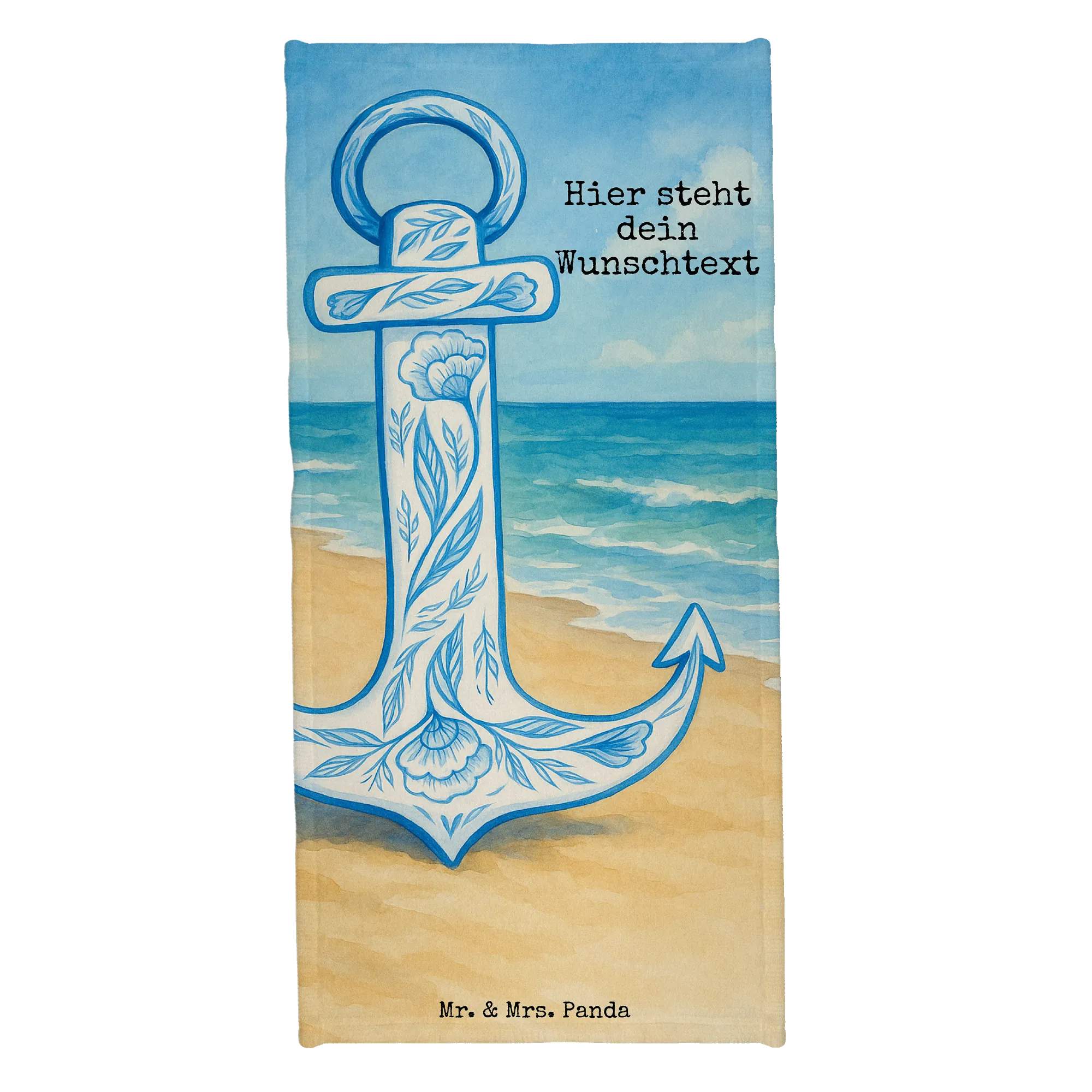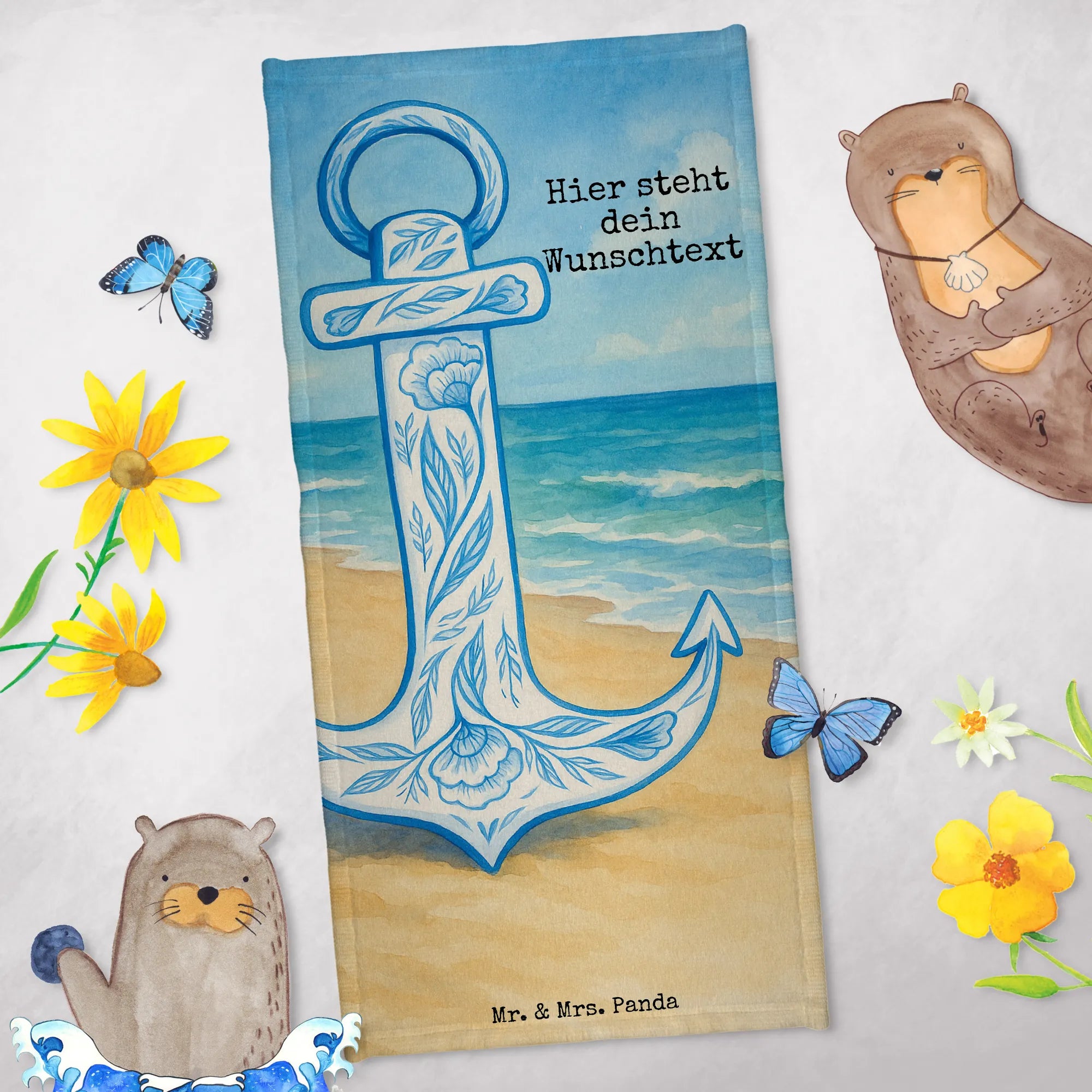 Personalisiertes Badehandtuch Anker Blau Design