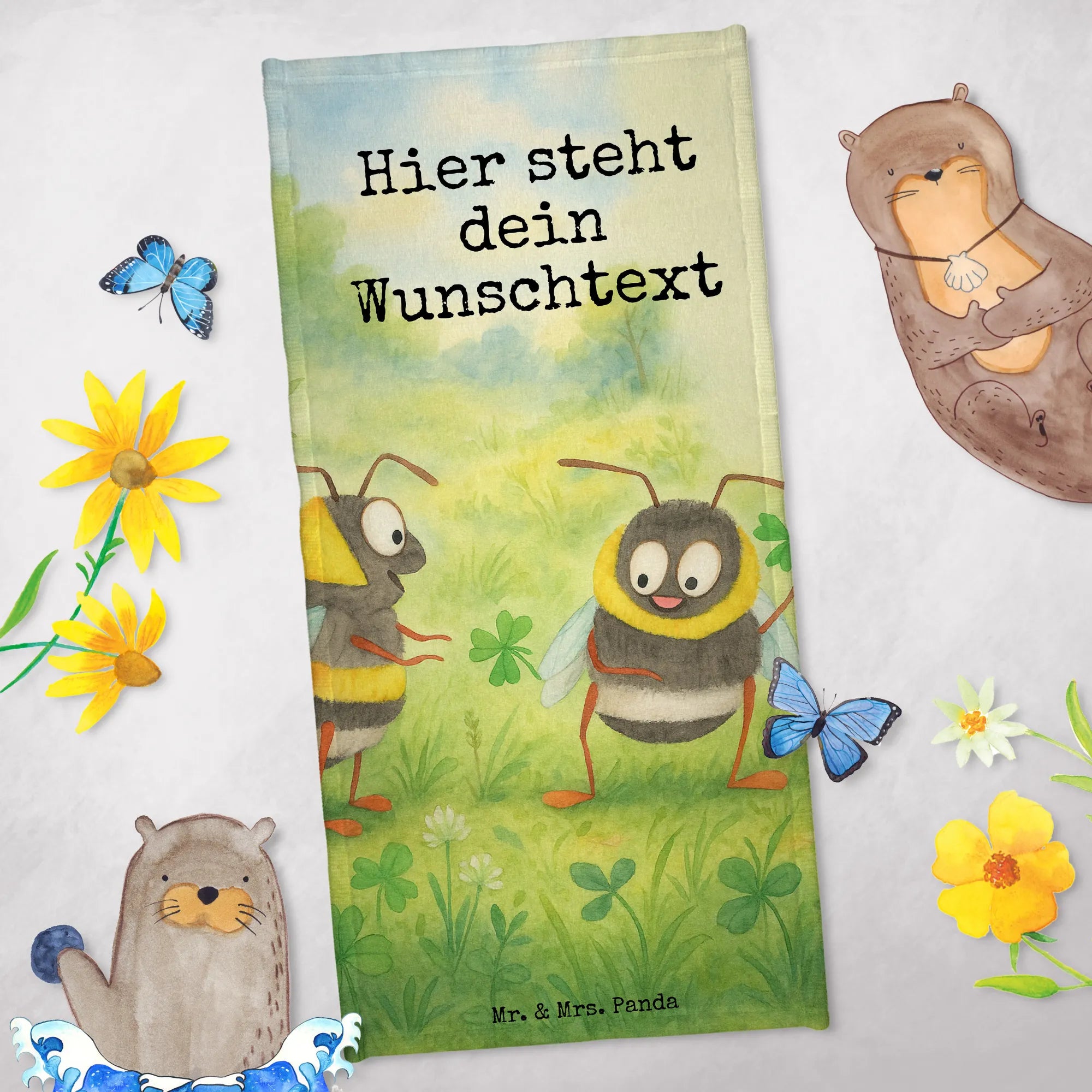 Personalisiertes Badehandtuch Hummeln Kleeblatt Design