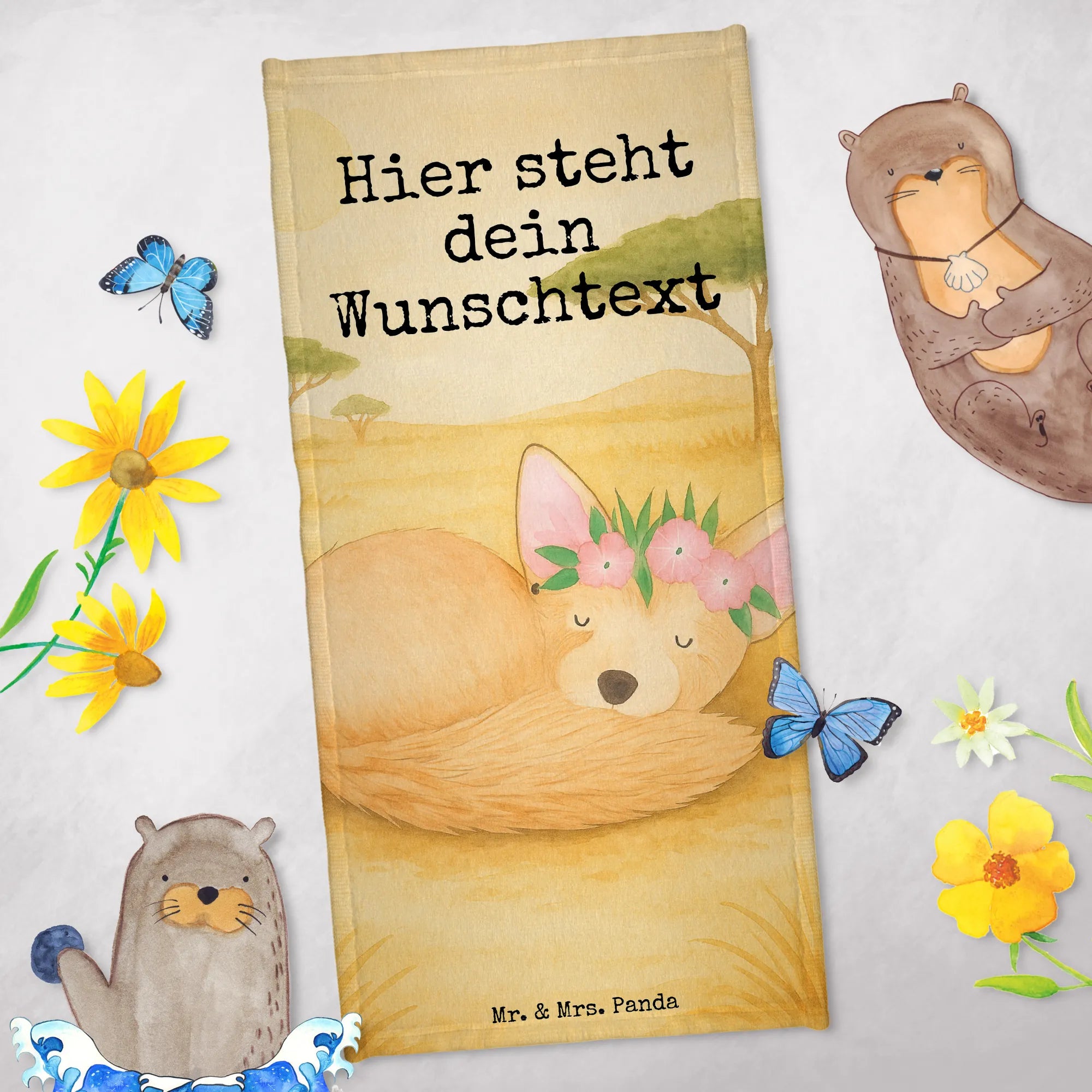 Personalisiertes Badehandtuch Wüstenfuchs Blumen Design