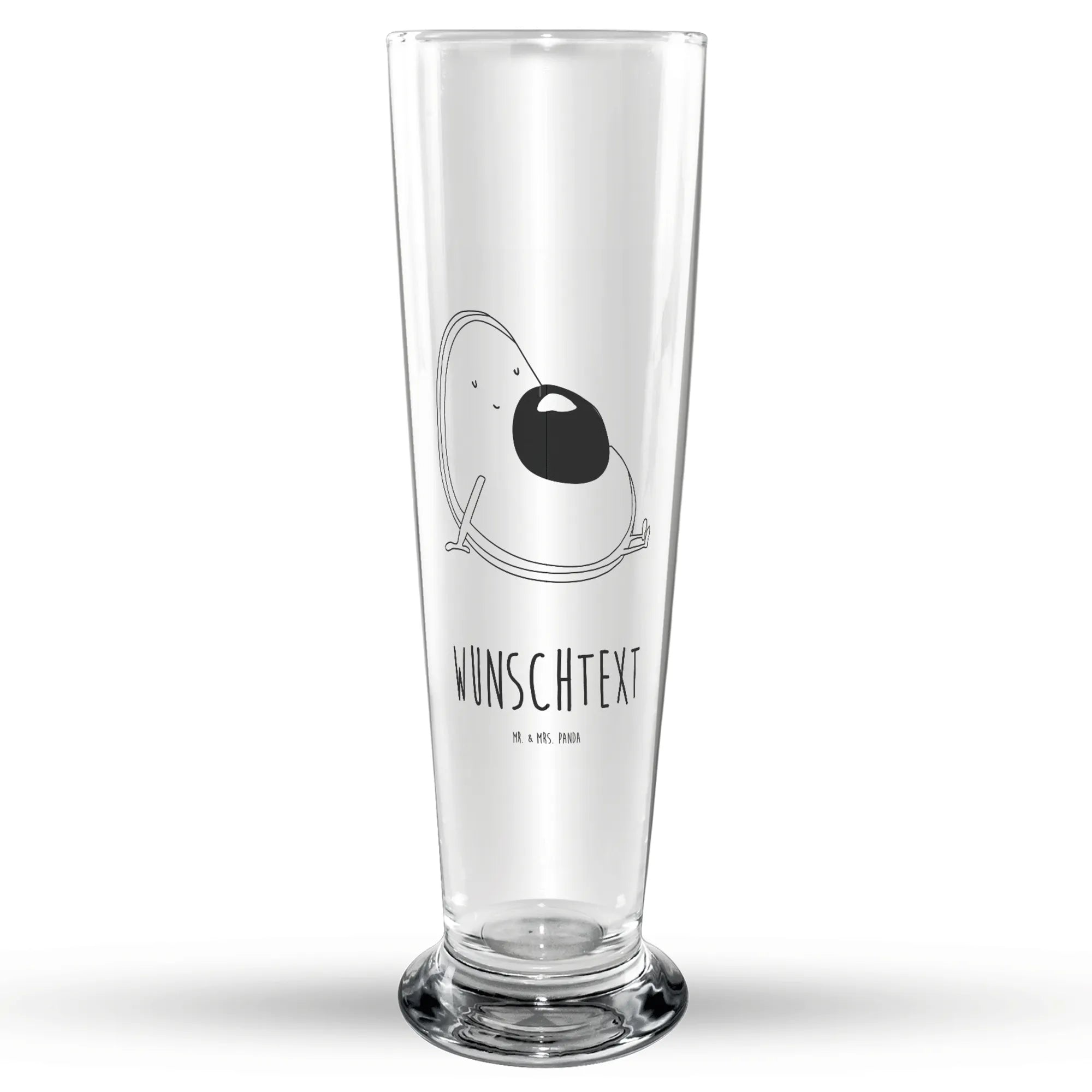 Entdecke unser einzigartiges personalisiertes Bierglas mit dem fröhlichen Motiv 'Avocado schwanger' von Mr. & Mrs. Panda!