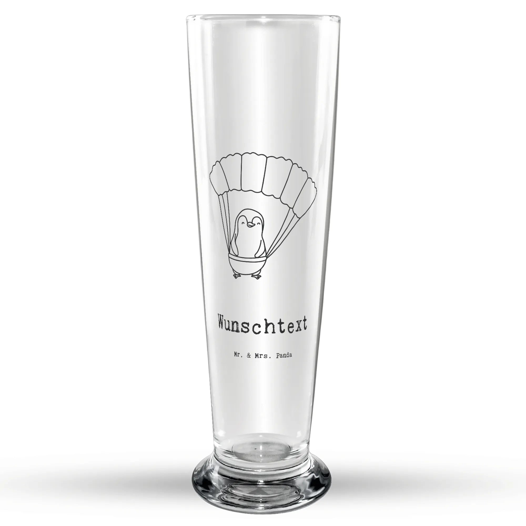 Personalisiertes Bierglas Pinguin Fallschirm springen