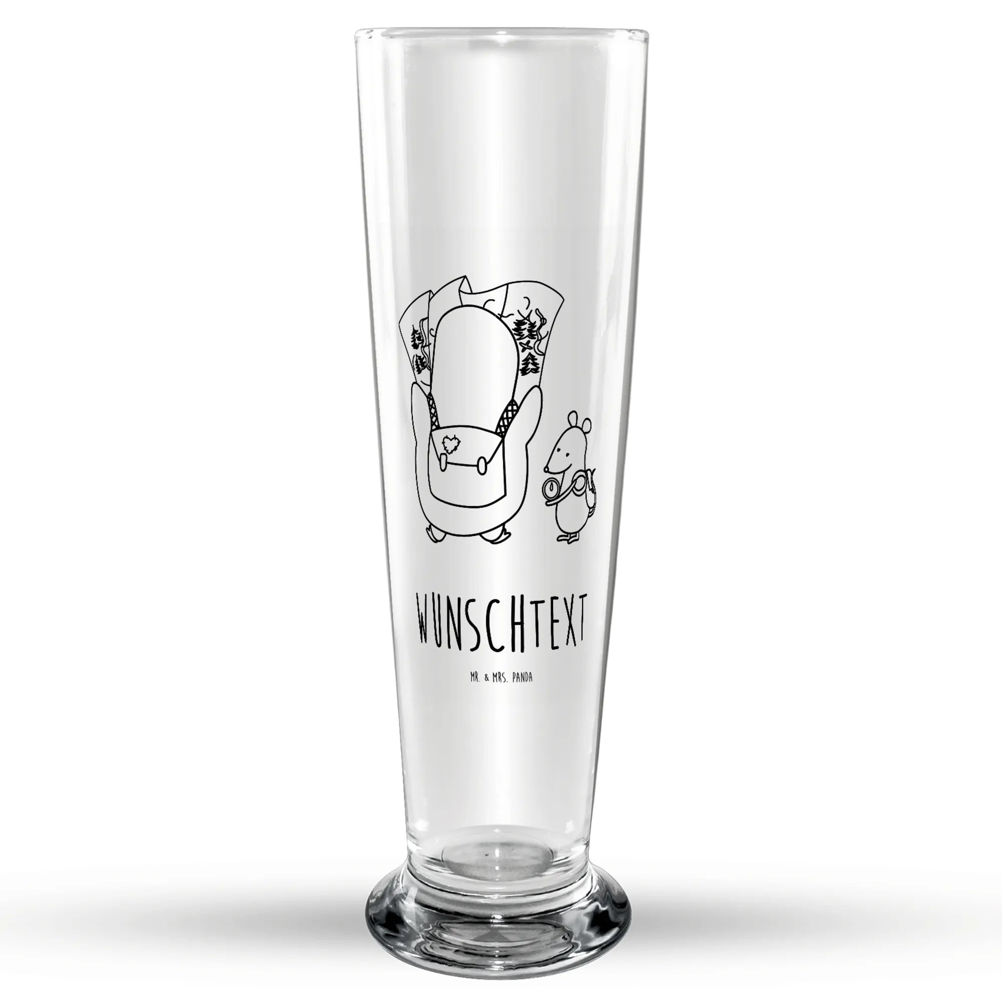 Das wunderschöne personalisierte Bierglas mit dem Motiv Pinguin & Maus Wanderer von Mr. & Mrs. Panda ist das perfekte Geschenk für alle Abenteurer und Bierliebhaber!