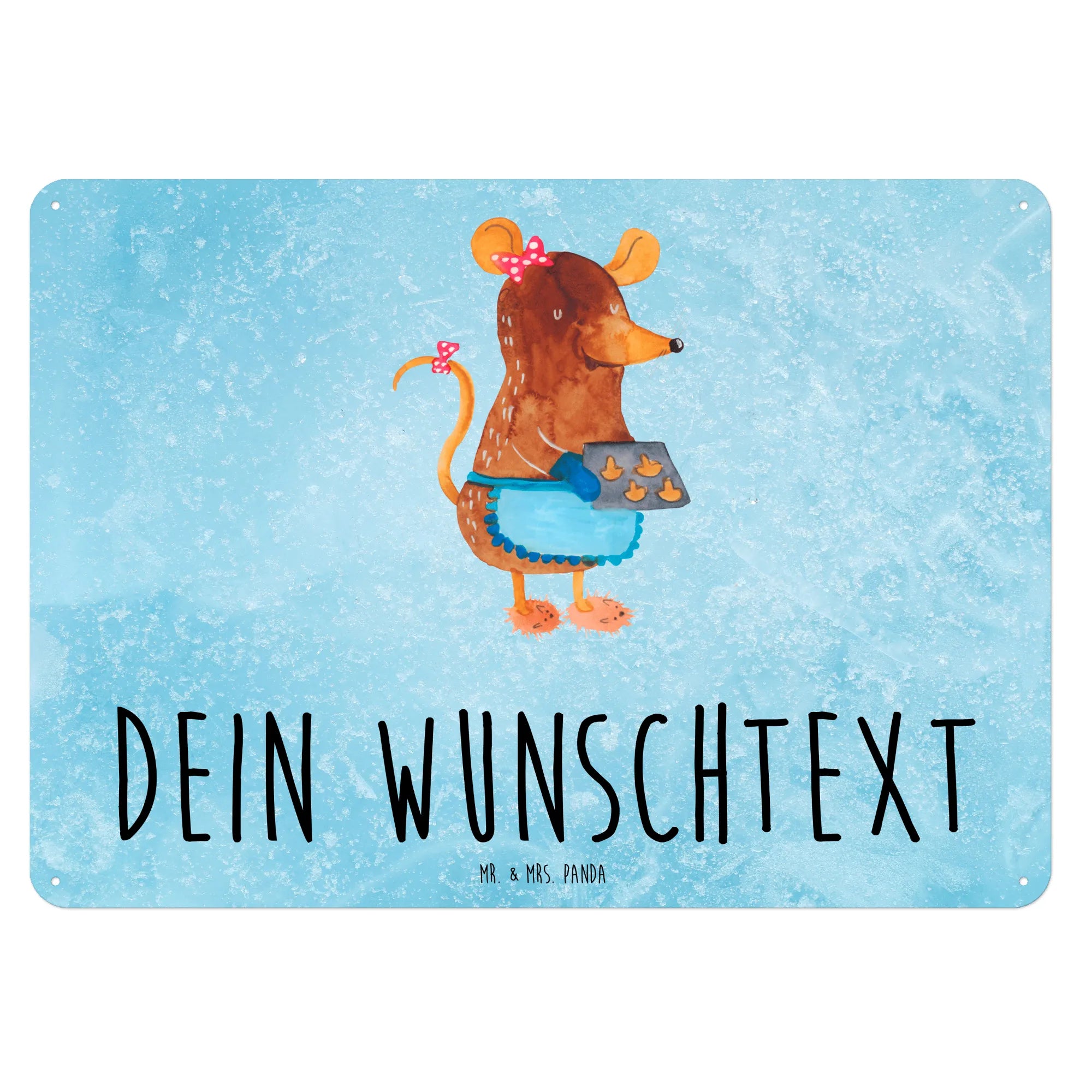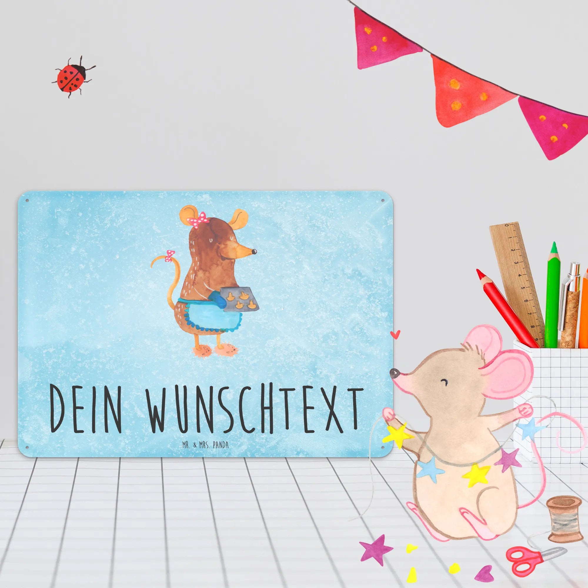 Das personalisierte Blechschild mit dem süßen Motiv der Maus, die Kekse backt, ist das perfekte Geschenk für alle, die die Winter- und Weihnachtszeit lieben.