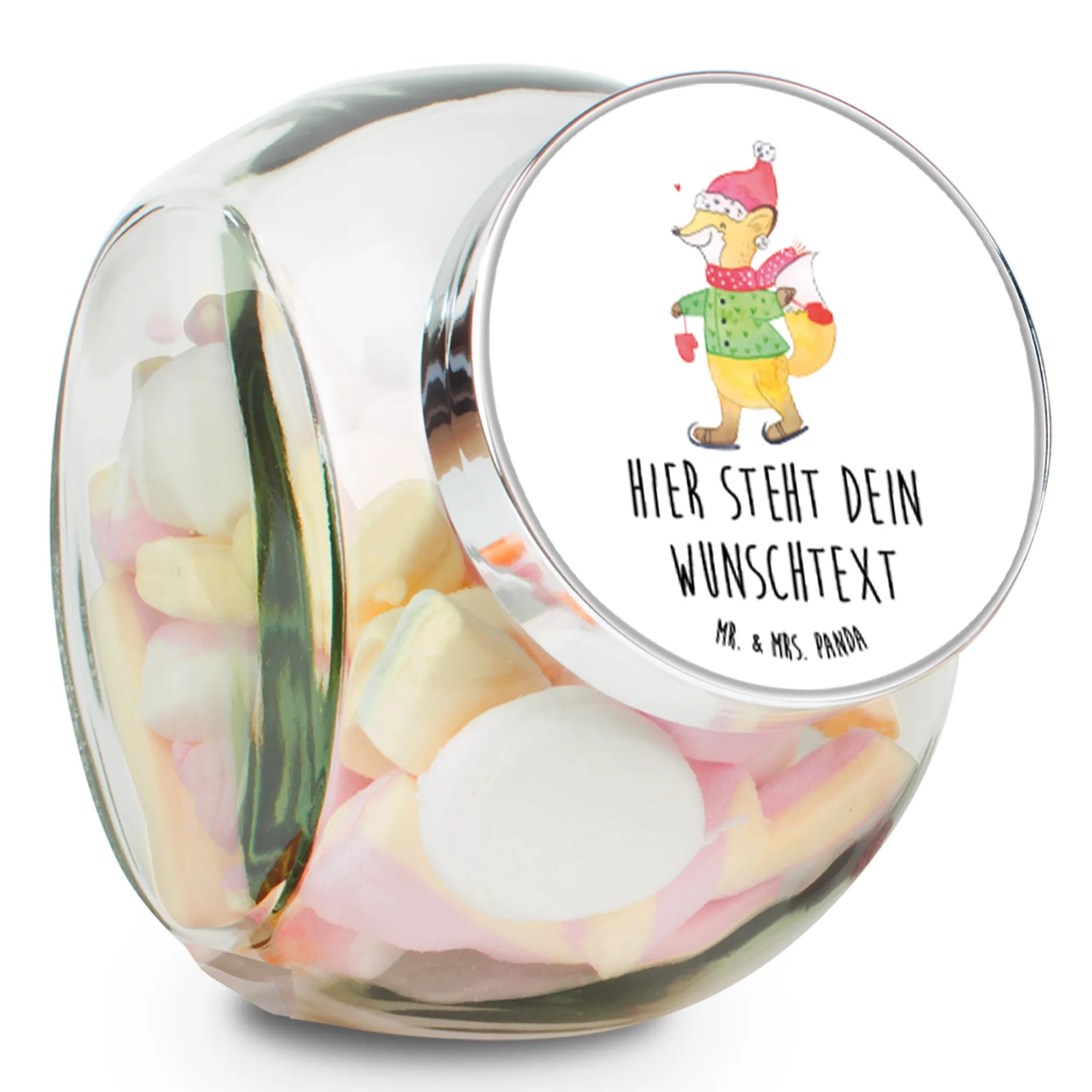 Suchst du das perfekte Geschenk für die Winter- und Weihnachtszeit? Dann ist das personalisierte Bonbonglas mit dem fröhlichen Fuchs in Schlittschuhen aus der Winter Kollektion von Mr. & Mrs. Panda genau das Richtige!