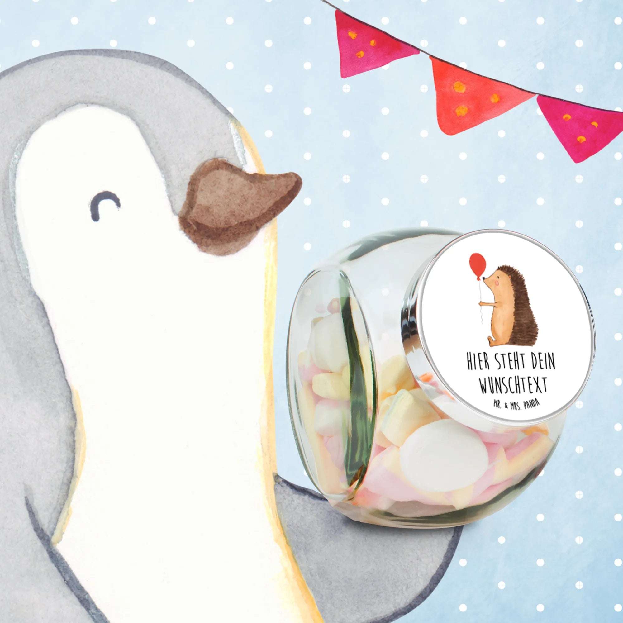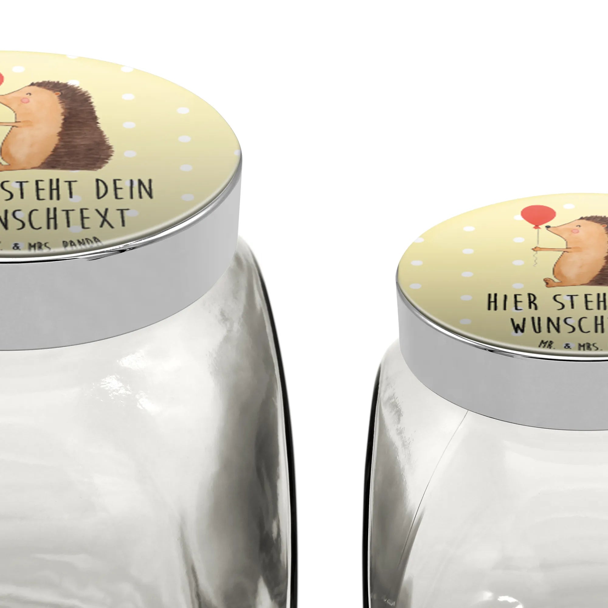 Diese wunderbare Aufbewahrungsdose ist Teil der "Small World"-Kollektion von Mr. & Mrs. Panda, deren liebevolle, handgezeichnete Designs ansprechende Glücksmomente schaffen. Das Bonbonglas kann zudem individuell mit einem Namen oder Wunschtext personalisiert werden, was es zu einem einzigartigen Geschenk macht. Verschenke Freude, erinnere an schöne Zeiten und mache jeden Tag ein wenig bunter mit dem personalisierten Bonbonglas mit dem Igel und Luftballon von Mr. & Mrs. Panda – ein Geschenk, das immer in Erinnerung bleibt.