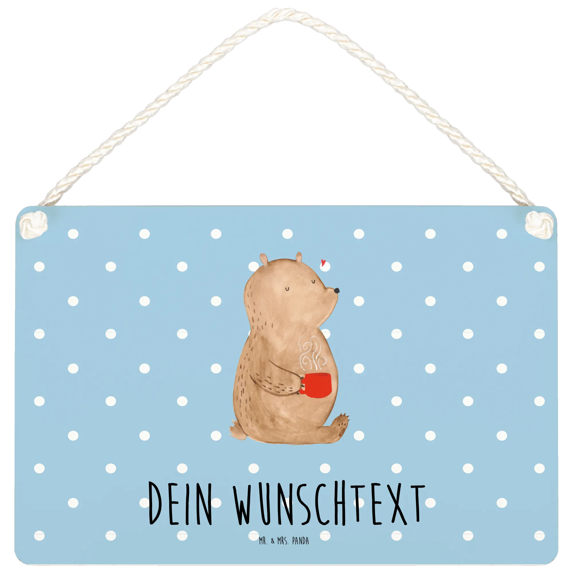 Entdecke unser wunderschönes und personalisiertes Deko Schild mit dem süßen Bärenmotiv "Kaffee" von Mr. & Mrs. Panda. Dieses Schild ist nicht nur eine zauberhafte Dekoration für deine Wand oder Haustür, sondern auch eine tägliche Portion Motivation für all die Kaffeeliebhaber da draußen!