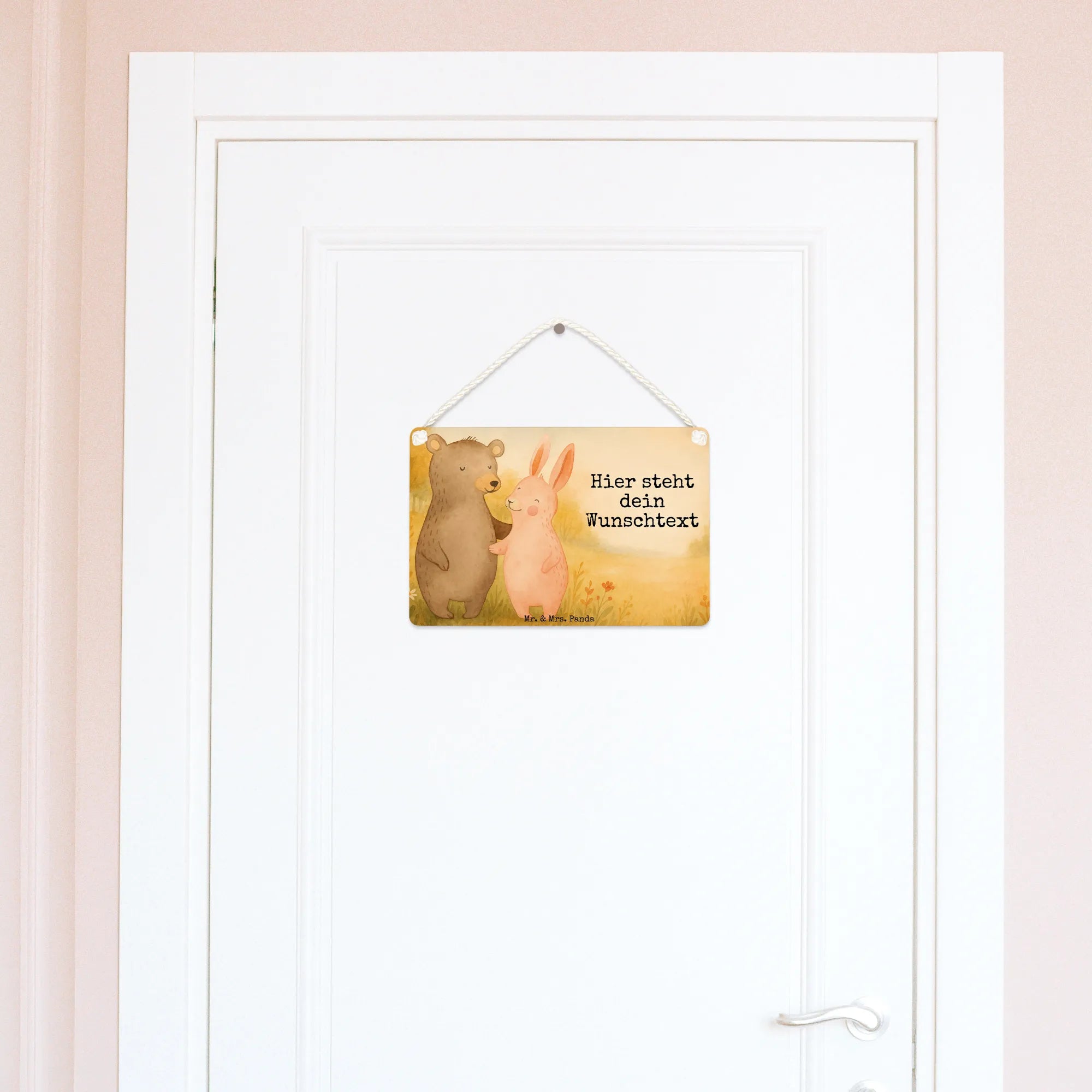 Personalisiertes Deko Schild Bär und Hase Umarmen Design - DIN A6