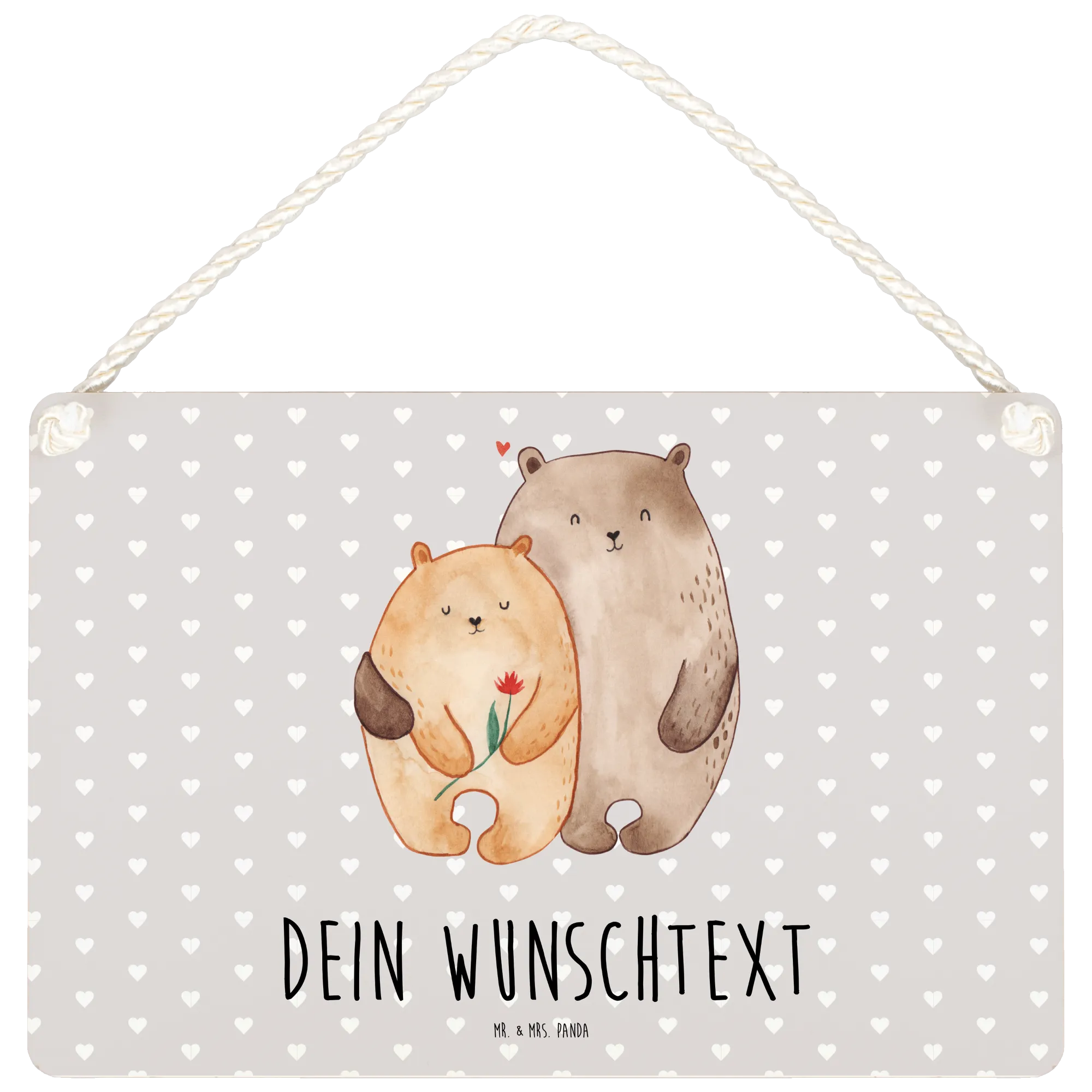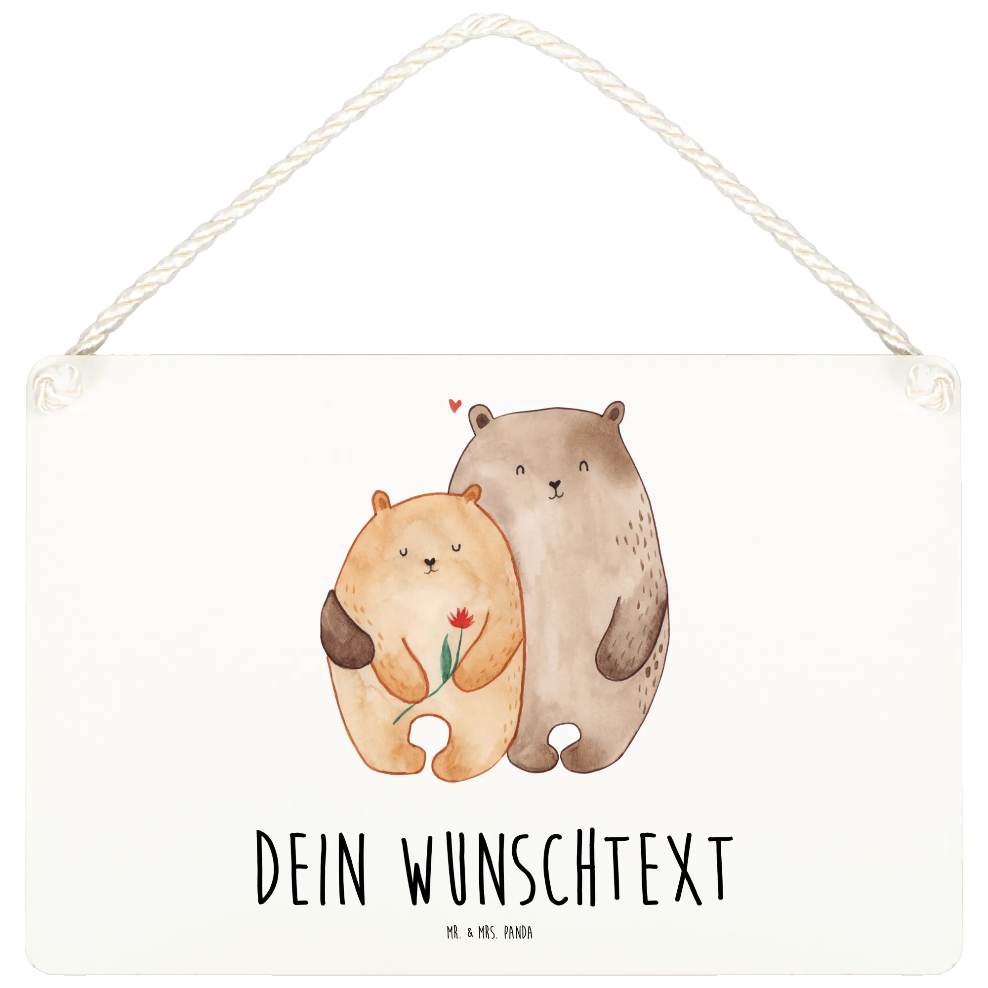 Ein wunderschönes und edles personalisiertes Deko Schild von Mr. & Mrs. Panda, das die Bären Liebe perfekt widerspiegelt. Es ist das ideale Geschenk für Verliebte und zeigt nicht nur die tiefen Gefühle zwischen Partnern, sondern bereichert auch jede Wand oder Tür mit seinem liebevollen Design.