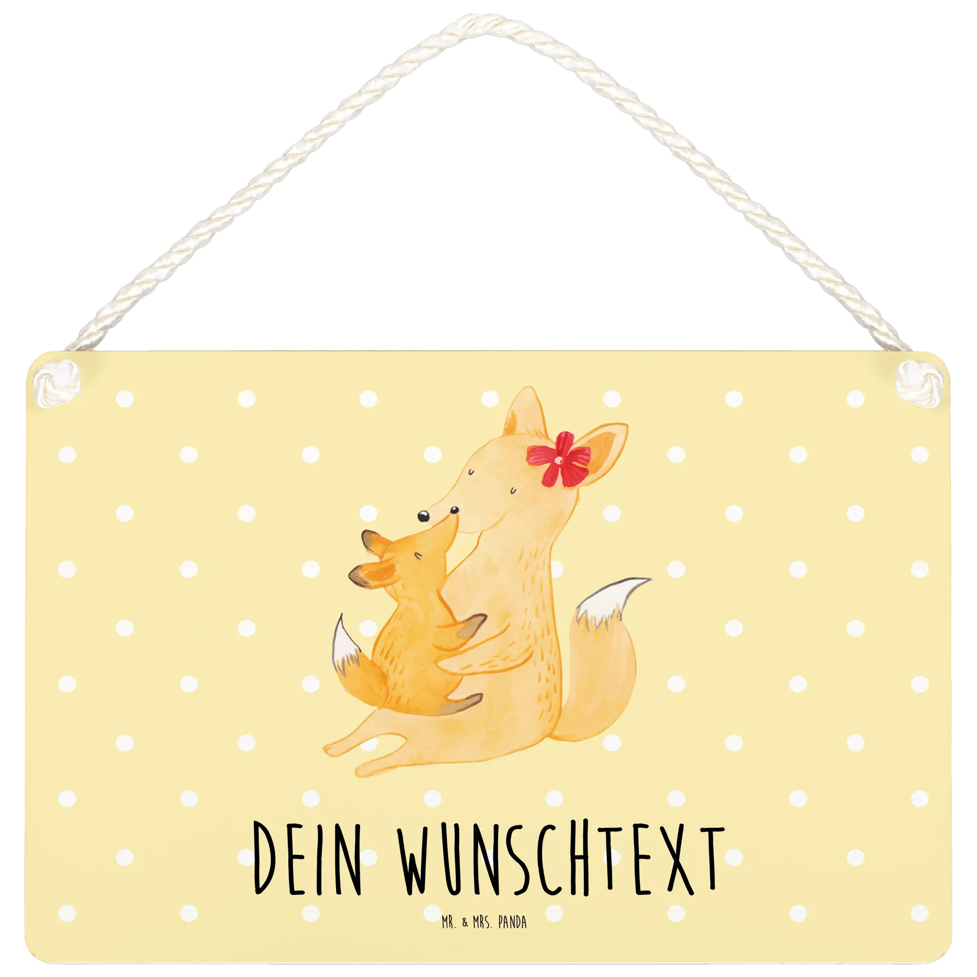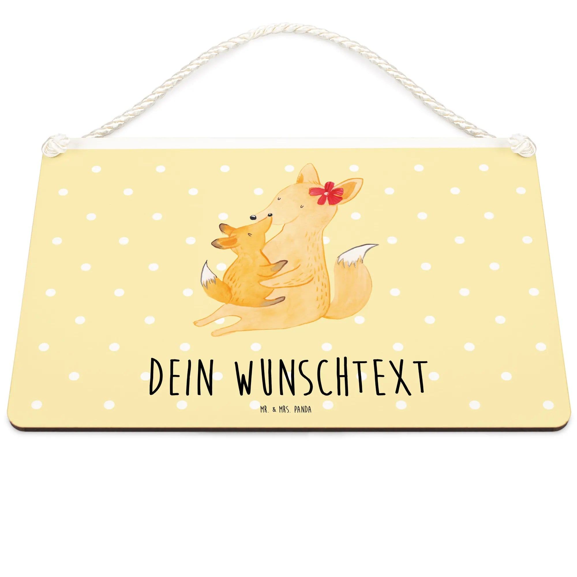 Die Familien Kollektion von Mr. & Mrs. Panda vermittelt nicht nur Liebe, sondern auch die bunten Momente des Familienlebens, und mit dem Fuchs Mama & Kind Schild tust du genau das. Mach deinem Lieblingsmenschen eine Freude und halte die besonderen Momente zusammen fest, denn am Ende zählt nur die Familie!