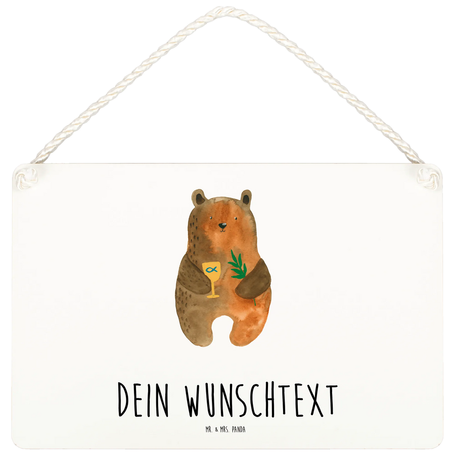 Das personalisierte Deko Schild "Konfirmation-Bär" von Mr. & Mrs. Panda ist das perfekte Geschenk zur Konfirmation! Mit einem abenteuerlustigen Bären, der einen goldenen Kelch in einer Hand und einen Zweig in der anderen hält, verbreitet das Schild Freude und gute Wünsche.