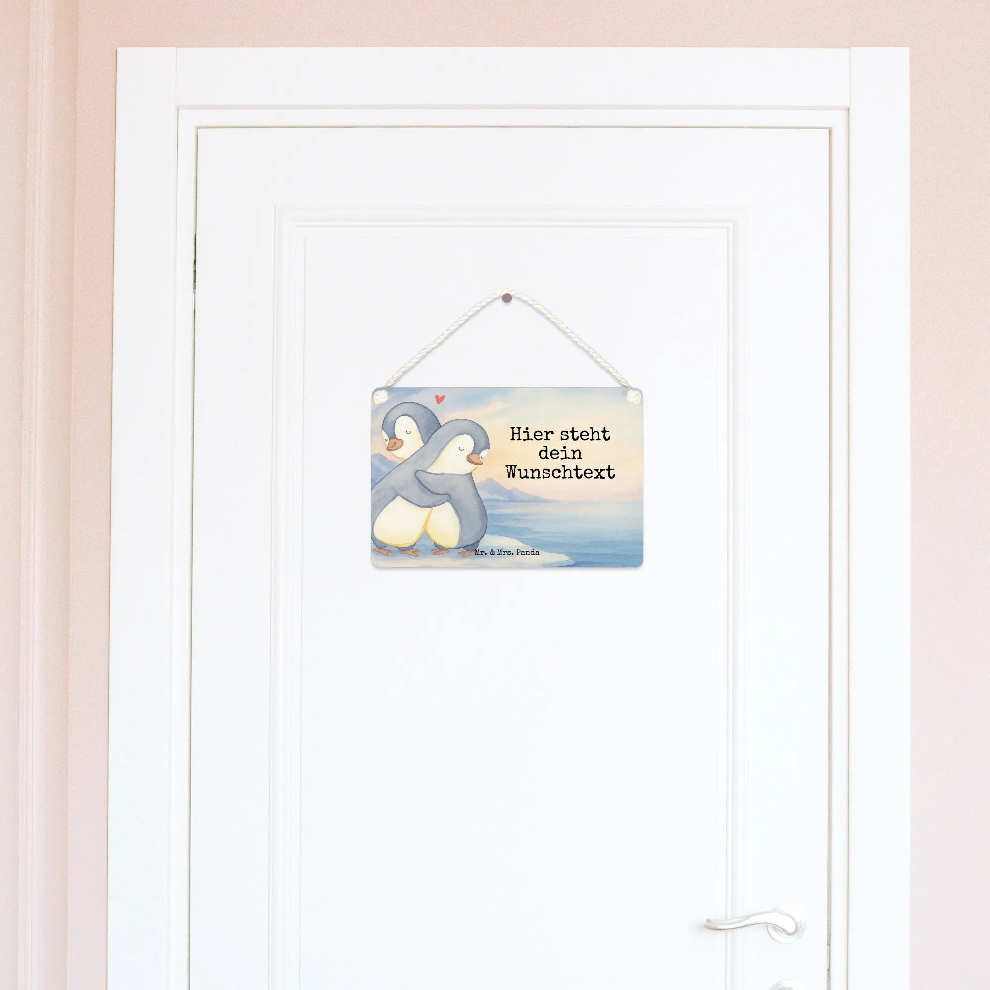 Personalisiertes Deko Schild Pinguine Kuscheln Design - DIN A4