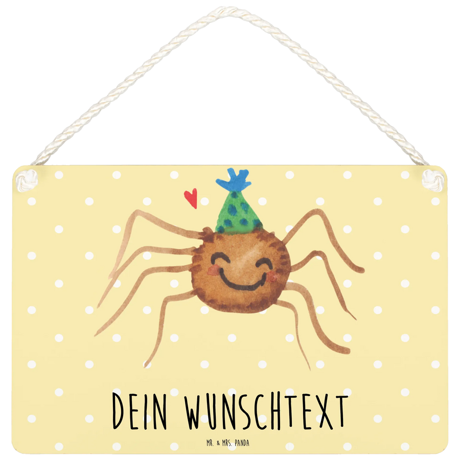 Personalisiertes Deko Schild Spinne Agathe Party - DIN A6 - Gelb Pastell