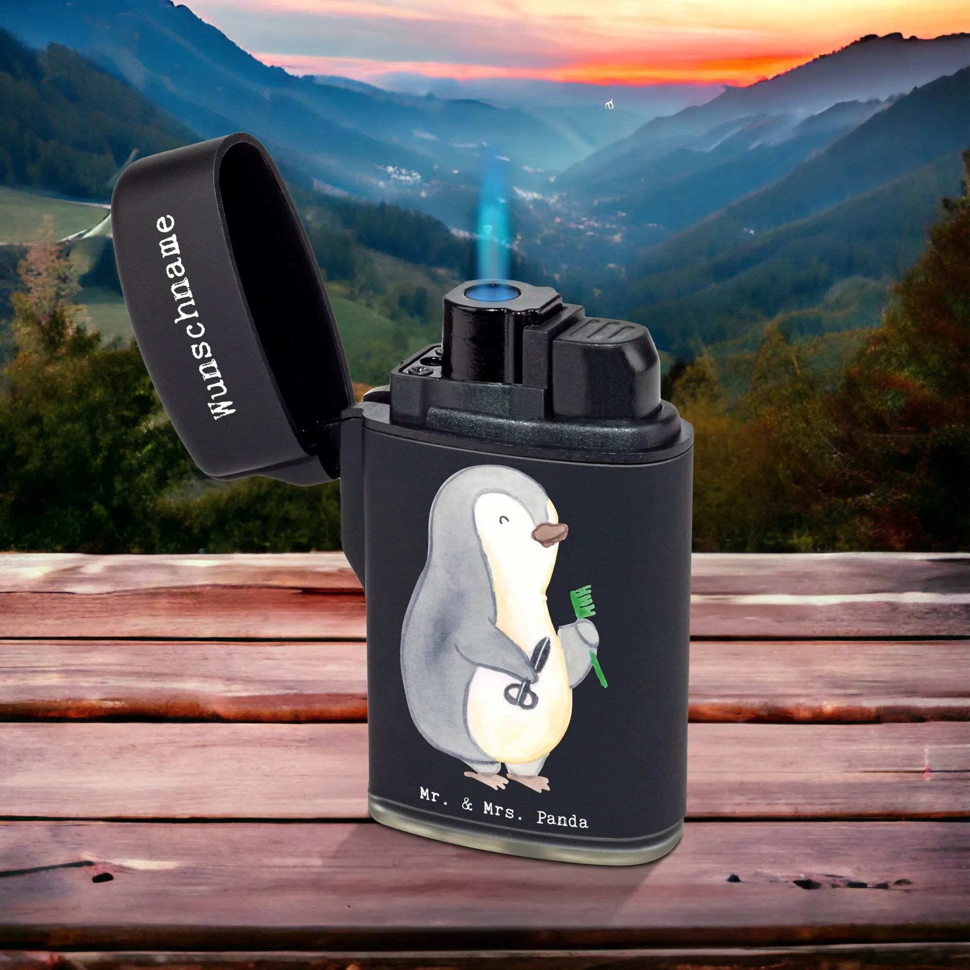 Mit dem personalisierten Feuerzeug von Mr. & Mrs. Panda machst du das Anzünden von Kerzen oder Grillfeuern zum Erlebnis! Mit Abmessungen von 70 mm x 40 mm passt es in jede Tasche und ist perfekt für die Reise. Hochwertig bedruckt mit einem designvollen Spruch und schönen Motiven ist es mehr als nur ein Feuerzeug. Du kannst es nach deinen Wünschen gestalten und mit deinem eigenen Namen oder Text personalisieren. Das Gummi-Sleeve sorgt für einen festen Halt und der praktische Klappmechanismus macht die Nutzung einfach und angenehm. Hergestellt aus langlebigem Kunststoff, ist das Feuerzeug nachfüllbar und erlaubt eine stufenlose Flammenregelung. Perfekt für eigene Nutzung oder als liebevolles Geschenk für Freunde, die die besonderen Momente im Leben schätzen!