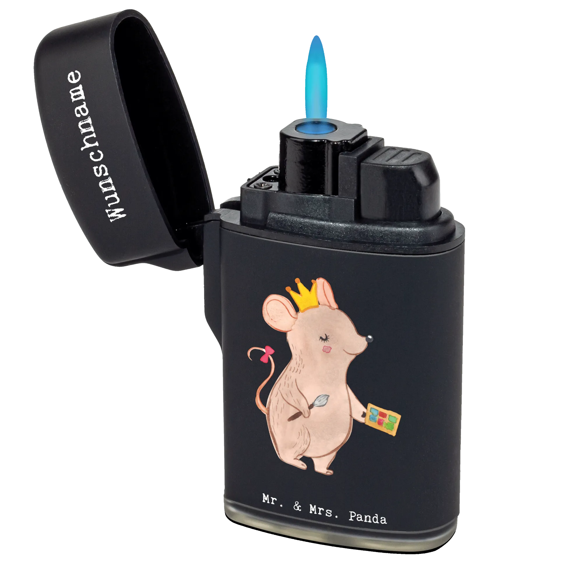 Das personalisierte Feuerzeug "Make Up Artist mit Herz" von Mr. & Mrs. Panda ist das perfekte Geschenk für alle, die in der Beauty-Branche tätig sind! Dieses einzigartige Feuerzeug kombiniert Funktionalität mit einem liebevollen Design, das die Seele einer Make Up Artist verkörpert. Mit dem süßen Motiv einer Maus, die Lidschatten und Pinsel in den Händen hält, erinnert es daran, wie wichtig Kreativität und Leidenschaft in jedem Beruf sind.