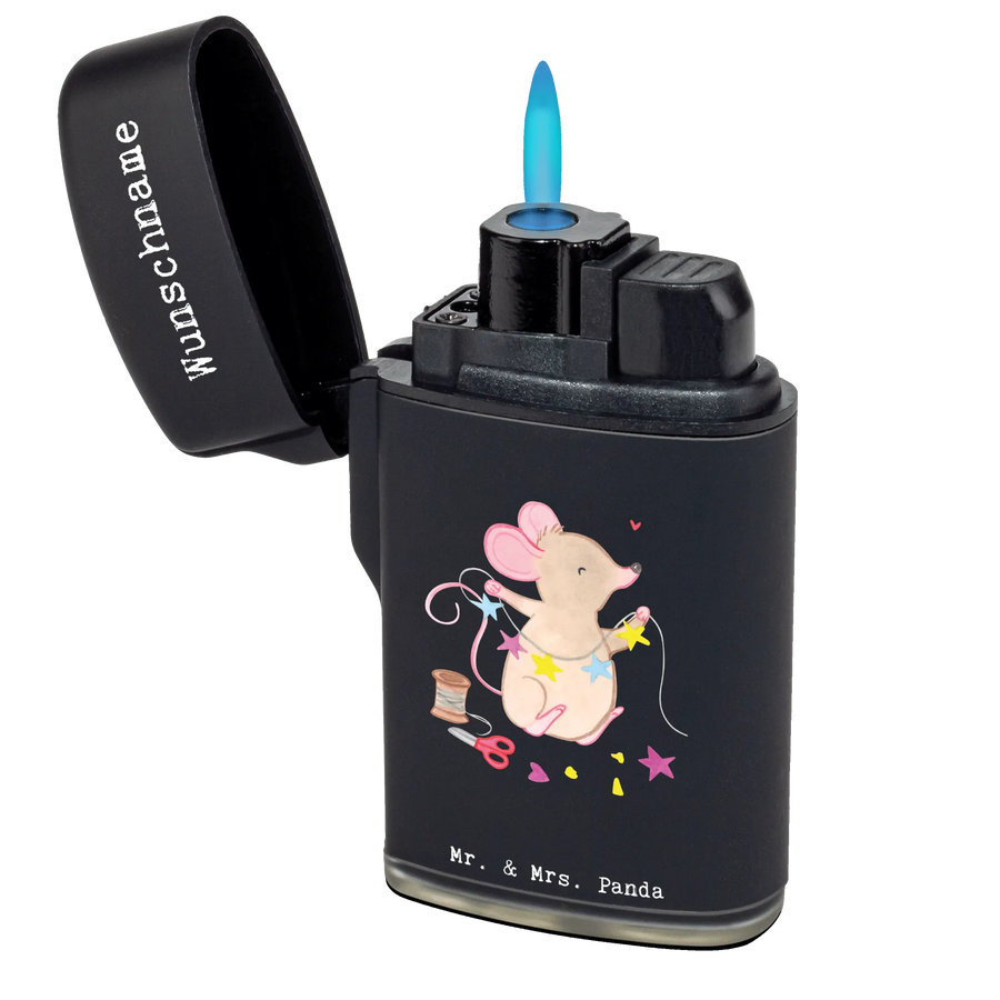 Das personalisierte Feuerzeug von Mr. & Mrs. Panda ist das perfekte Geschenk für alle Bastelbegeisterten! Mit dem süßen Motiv der Maus, die voller Freude mit Schere und Buntpapier bastelt, bringt dieses Feuerzeug jeden kreativen Kopf zum Strahlen.