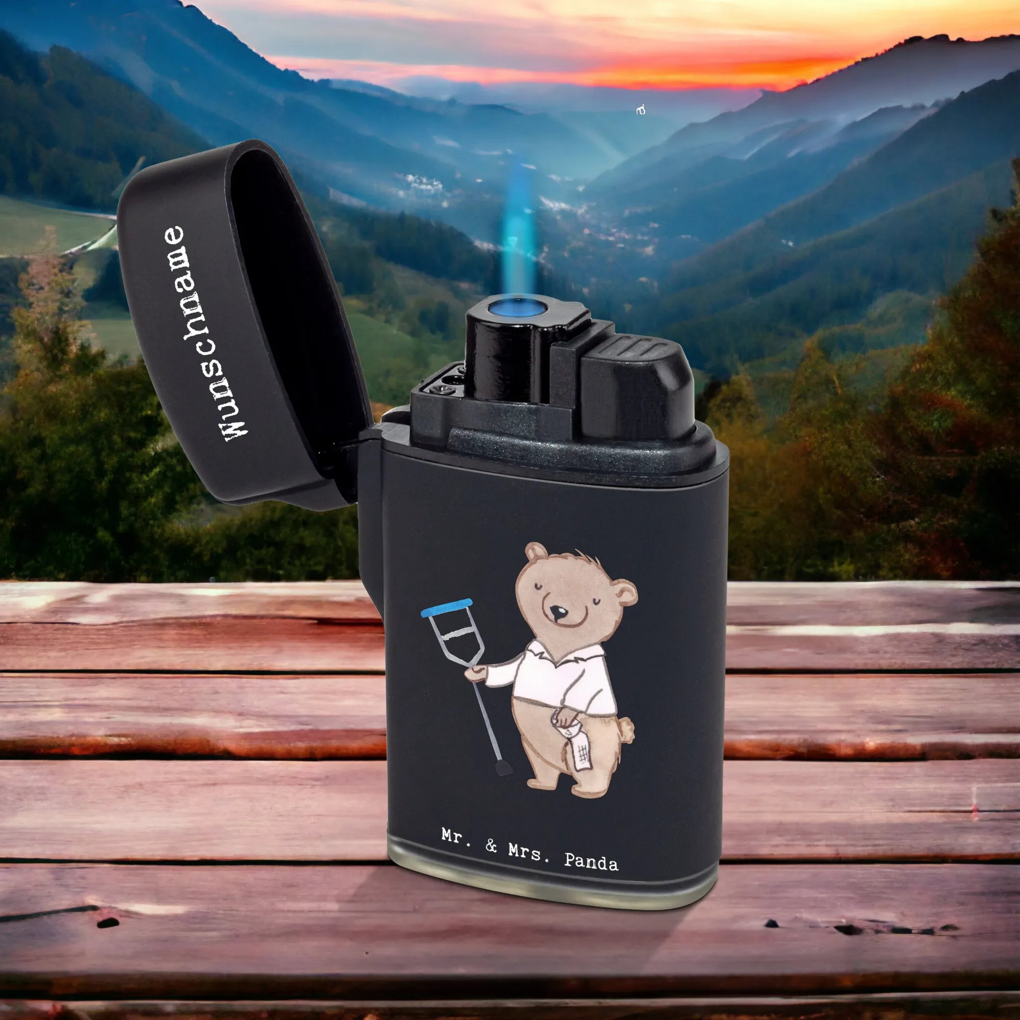 Entdecke unser personalisiertes Feuerzeug "Orthopäde mit Herz" von Mr. & Mrs. Panda! Dieses einzigartige, personalisierbare Feuerzeug ist nicht nur ein praktisches Accessoire, sondern auch ein wunderbares Geschenk für jeden Orthopäden oder Orthopädin. Ob zur Praxis-Eröffnung, zum Berufsjubiläum oder als Dankeschön für einen geschätzten Kollegen – dieses Feuerzeug bringt sicher ein Lächeln auf die Gesichter deiner Freunde oder Mitarbeiter. Mit einem liebevollen Motiv, das einen niedlichen Bären zeigt, der jemandem eine Krücke reicht, und dem witzigen Slogan "Du bist nur ein halber Mensch, wenn du kein Orthopäde bist", wirst du definitiv Eindruck hinterlassen.
