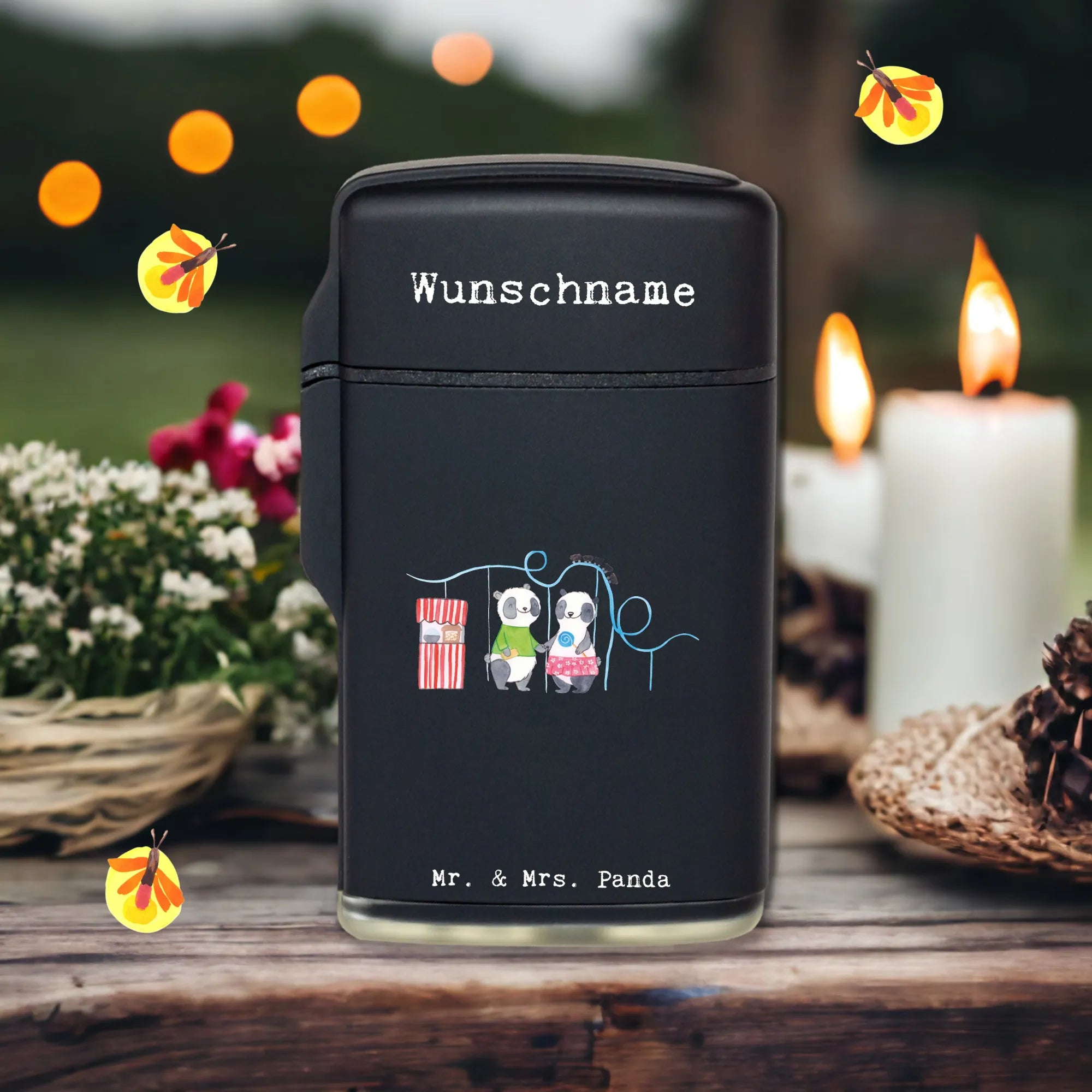 Mit dem personalisierten Feuerzeug von Mr. & Mrs. Panda machst du das Anzünden von Kerzen oder Grillfeuern zum Erlebnis! Mit Abmessungen von 70 mm x 40 mm passt es in jede Tasche und ist perfekt für die Reise. Hochwertig bedruckt mit einem designvollen Spruch und schönen Motiven ist es mehr als nur ein Feuerzeug. Du kannst es nach deinen Wünschen gestalten und mit deinem eigenen Namen oder Text personalisieren. Das Gummi-Sleeve sorgt für einen festen Halt und der praktische Klappmechanismus macht die Nutzung einfach und angenehm. Hergestellt aus langlebigem Kunststoff, ist das Feuerzeug nachfüllbar und erlaubt eine stufenlose Flammenregelung. Perfekt für eigene Nutzung oder als liebevolles Geschenk für Freunde, die die besonderen Momente im Leben schätzen!