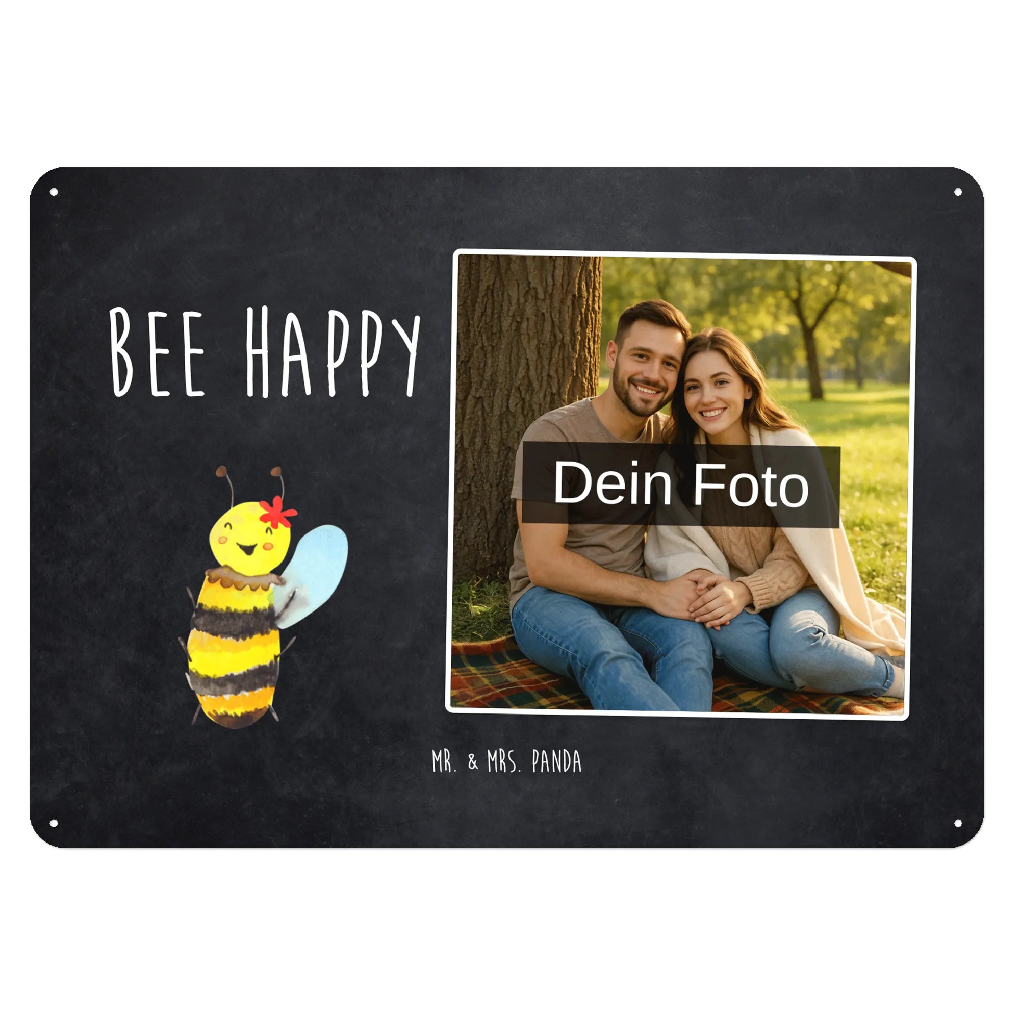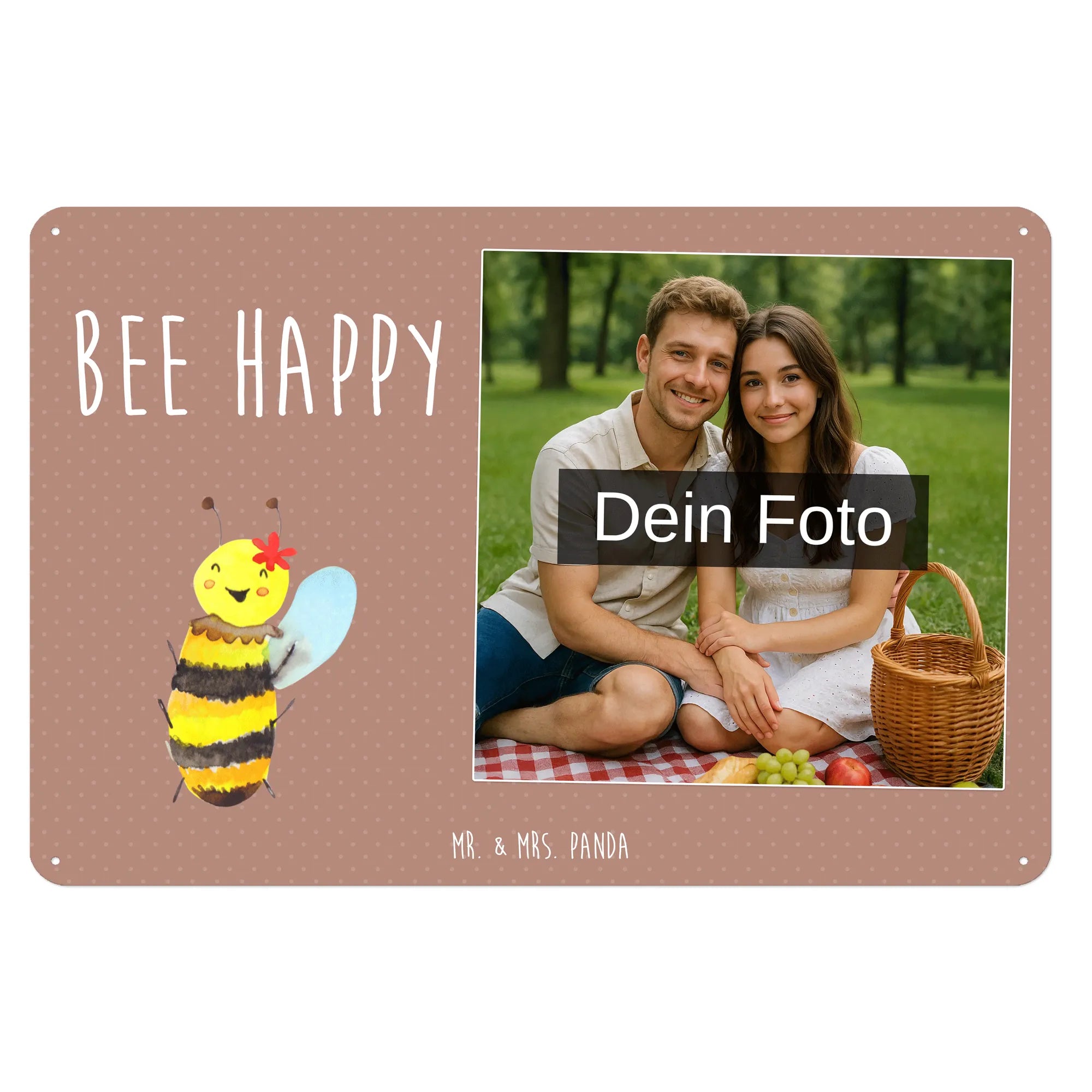 Personalisiertes Foto Blechschild Biene Happy - DIN A6 - Braun Pastell
