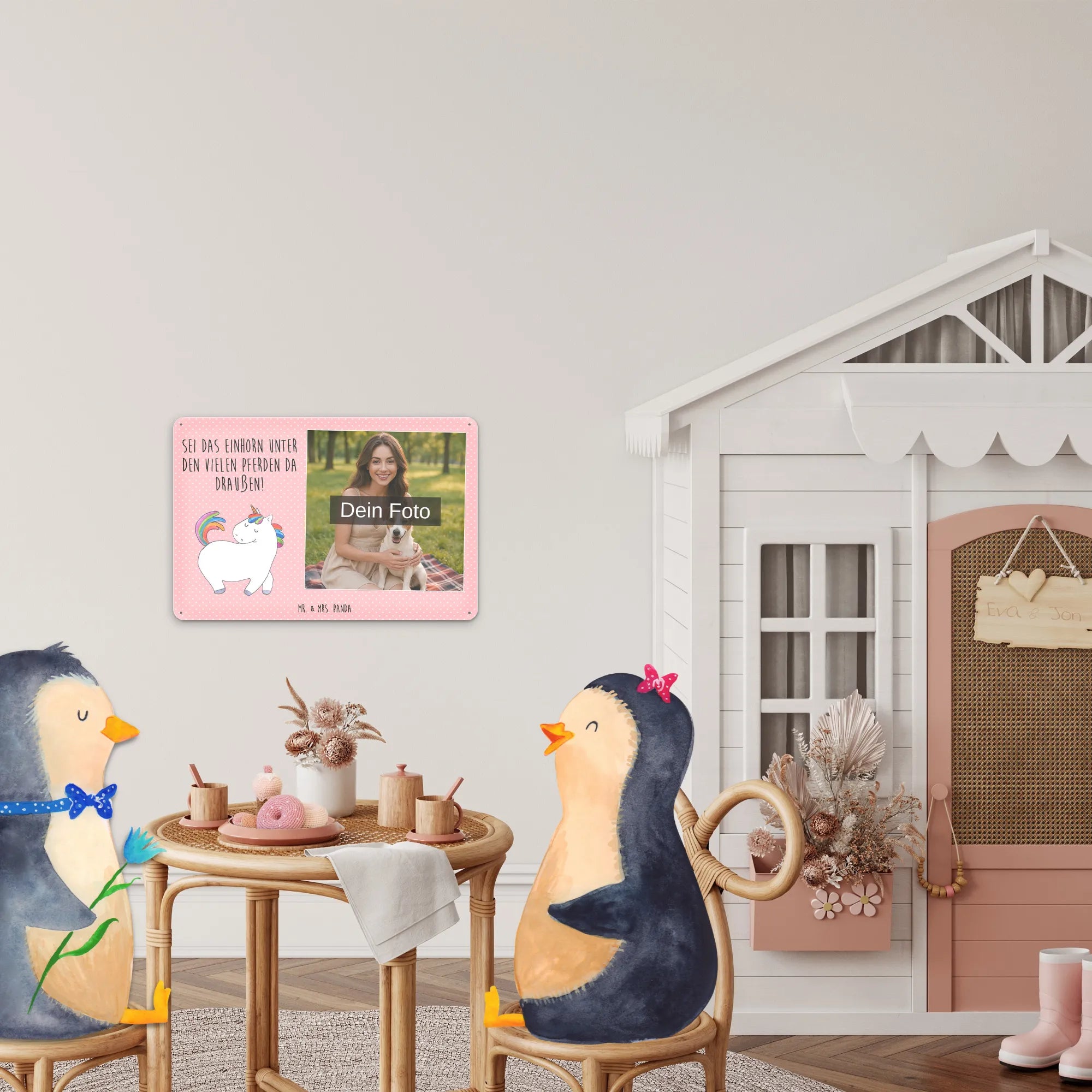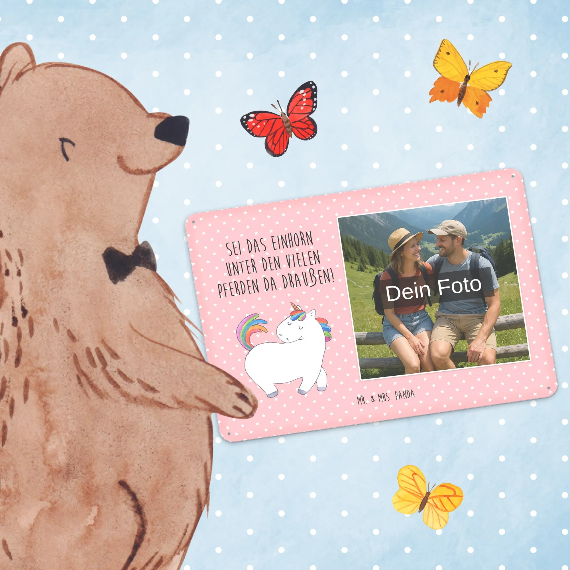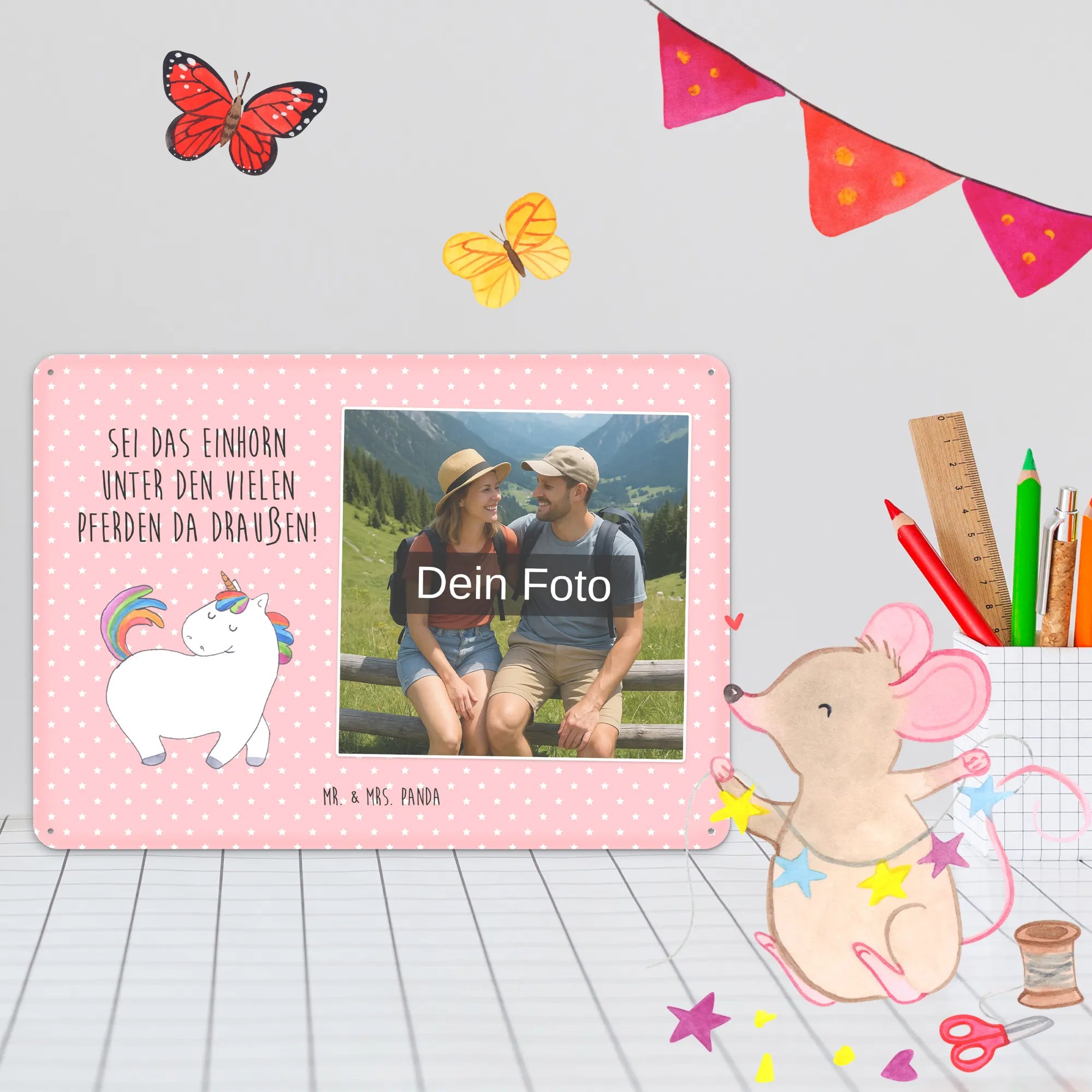 Personalisiertes Foto Blechschild Einhorn Stolzieren - DIN A6