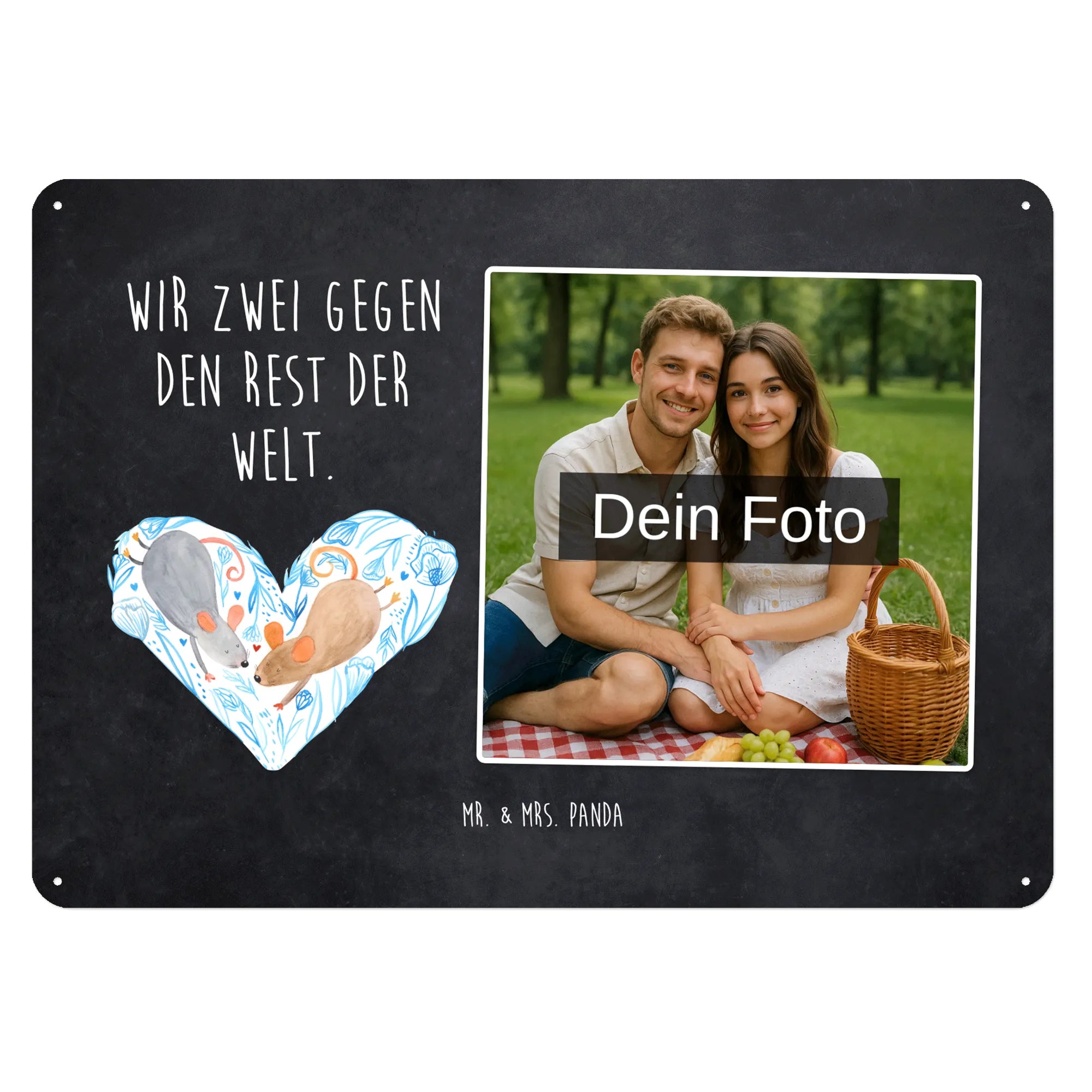 Gestalte jetzt dein einzigartiges Blechschild mit Foto von Mr. & Mrs. Panda – persönlich, edel und sofort zum Aufhängen!