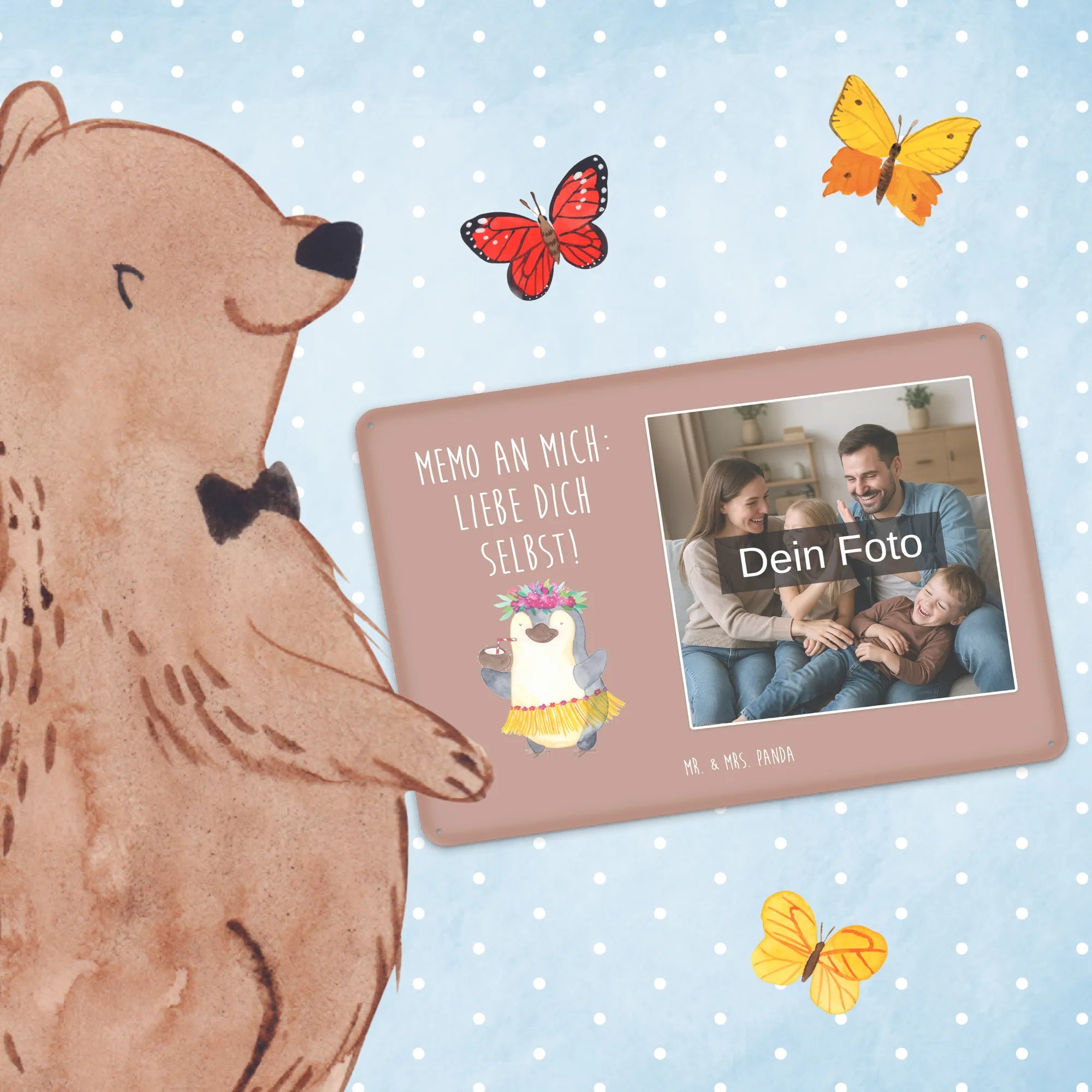 Mach dein Zuhause einzigartig – personalisiere jetzt dein Foto Blechschild von Mr. & Mrs. Panda und verschenke Erinnerungen.