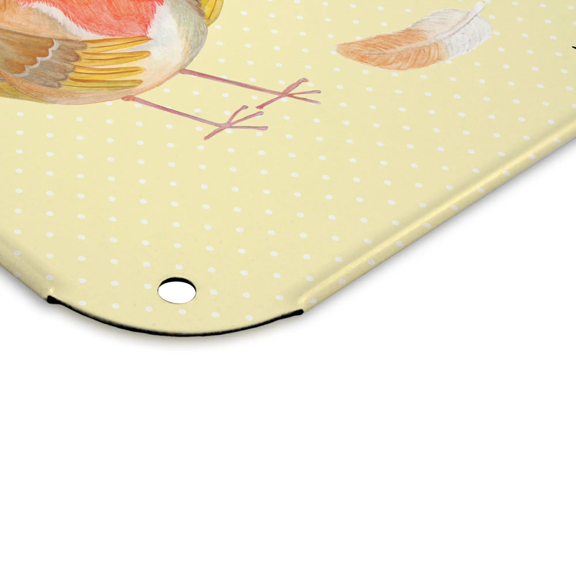 Personalisiertes Foto Blechschild Rotkehlchen Federn - DIN A6 - Braun Pastell