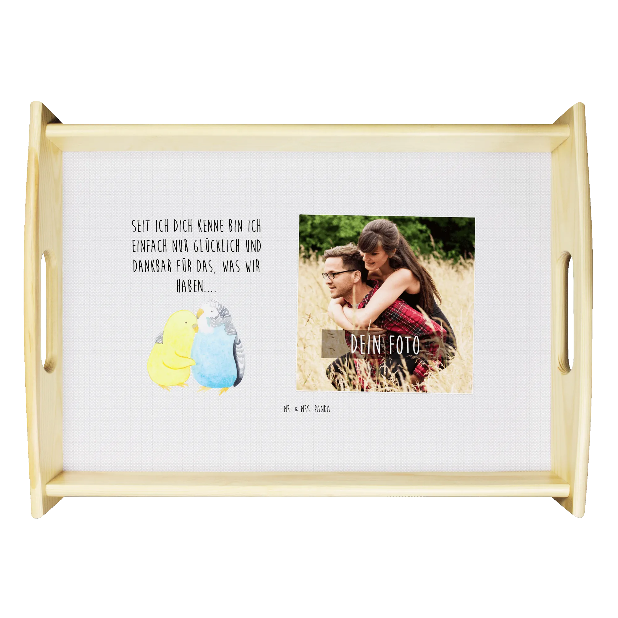 Bestelle jetzt dein personalisiertes Foto Serviertablett "Wellensittich Liebe" und mache deinen Liebsten eine Freude, die sie nie vergessen werden! Denn was gibt es Schöneres, als mit einem solch einzigartigen, persönlichen Geschenk seine Liebe auszudrücken? Seit ich dich kenne, bin ich einfach nur glücklich und dankbar für das, was wir haben.... Überrasche jemanden mit diesem liebevollen, handgefertigten Tablett und sorge für unvergessliche Momente. Es ist die perfekte Mischung aus Funktionalität und Herz, ein Geschenk, das von Herzen kommt.