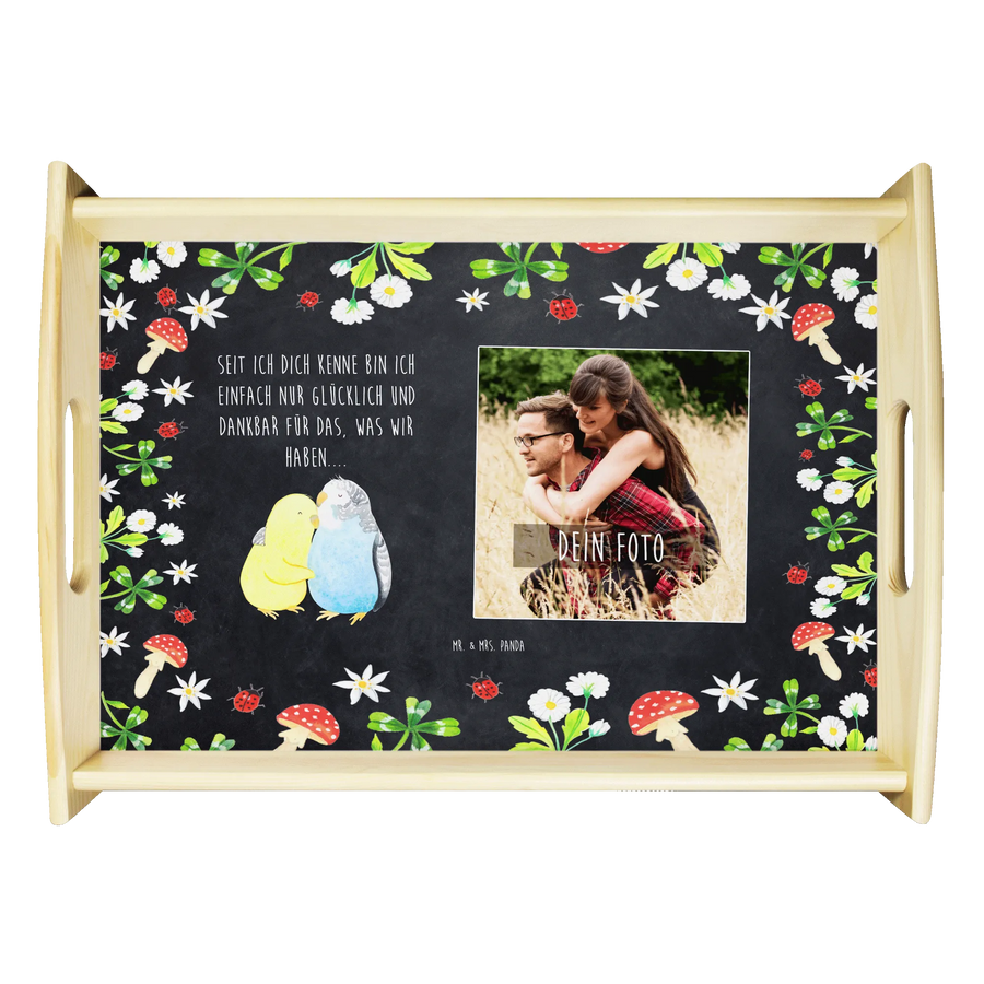 Personalisiertes Foto Serviertablett Wellensittich Liebe - Kreidetafel