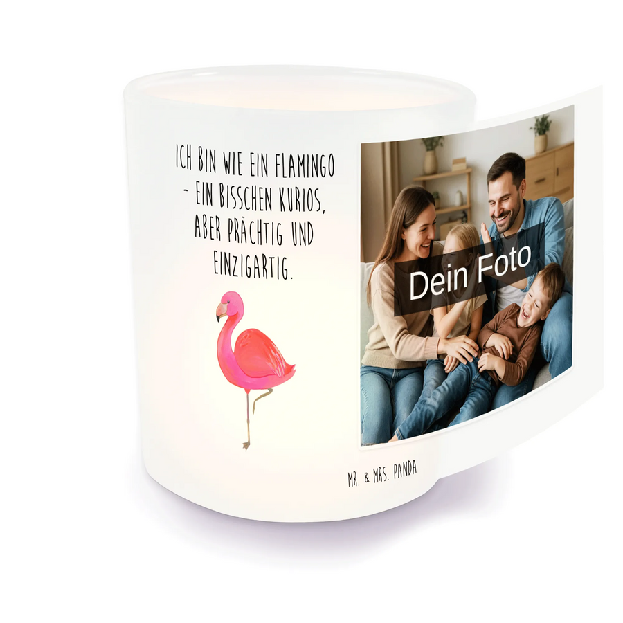 Personalisiertes Foto Windlicht Flamingo Classic – Mr. & Mrs. Panda