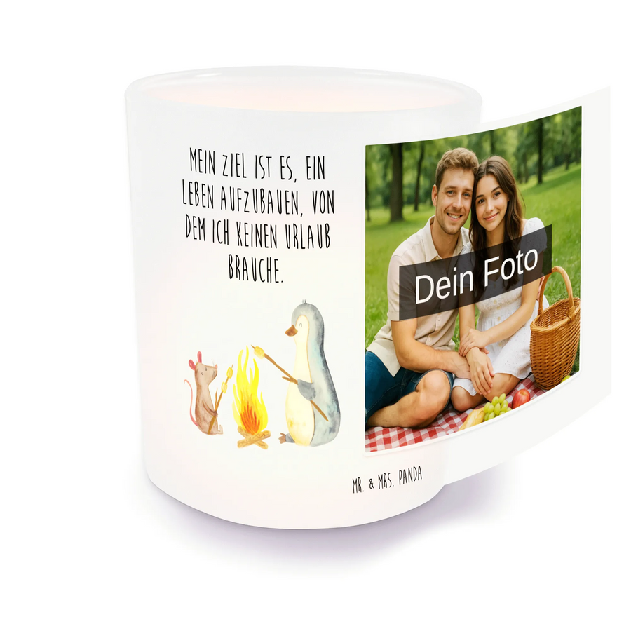 Personalisiertes Foto Windlicht Pinguin Lagerfeuer