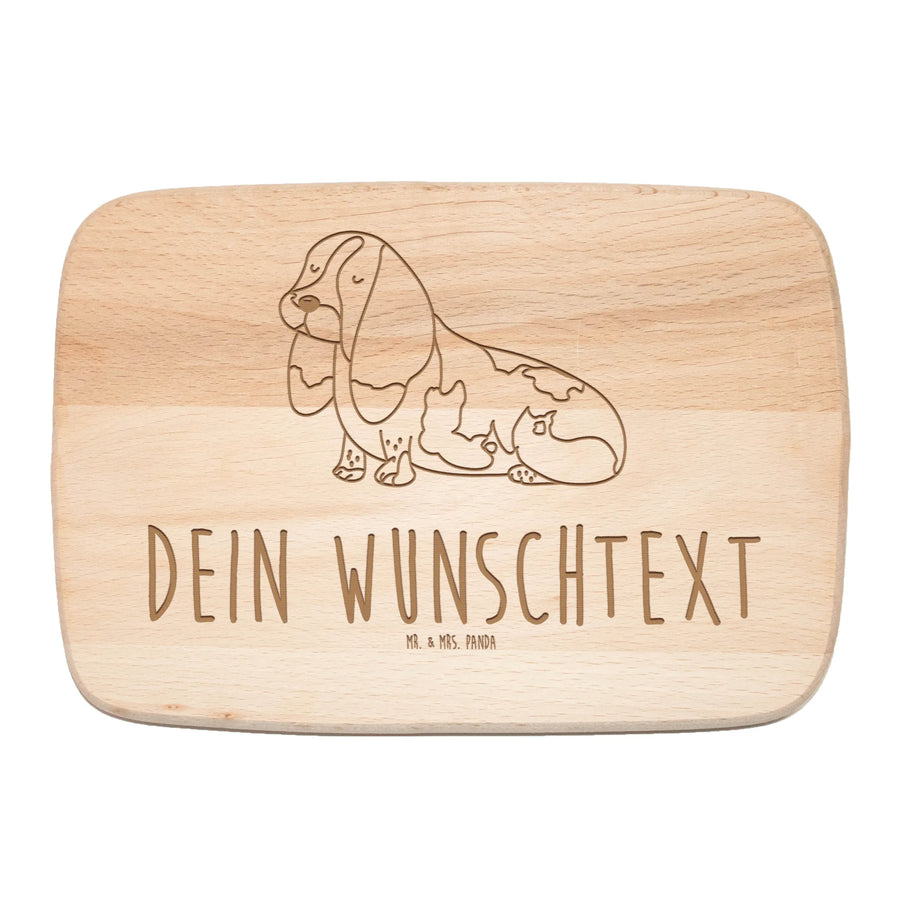 Das personalisierte Frühstücksbrett mit dem süßen Motiv des Basset Hound von Mr. & Mrs. Panda ist das ideale Geschenk für Hundeliebhaber!