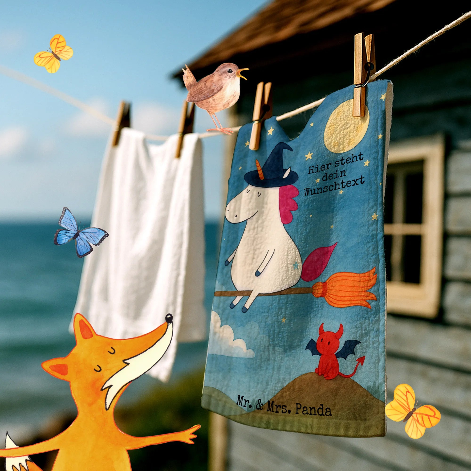 Personalisiertes Gästehandtuch Einhorn Hexe Design – Mr. & Mrs. Panda