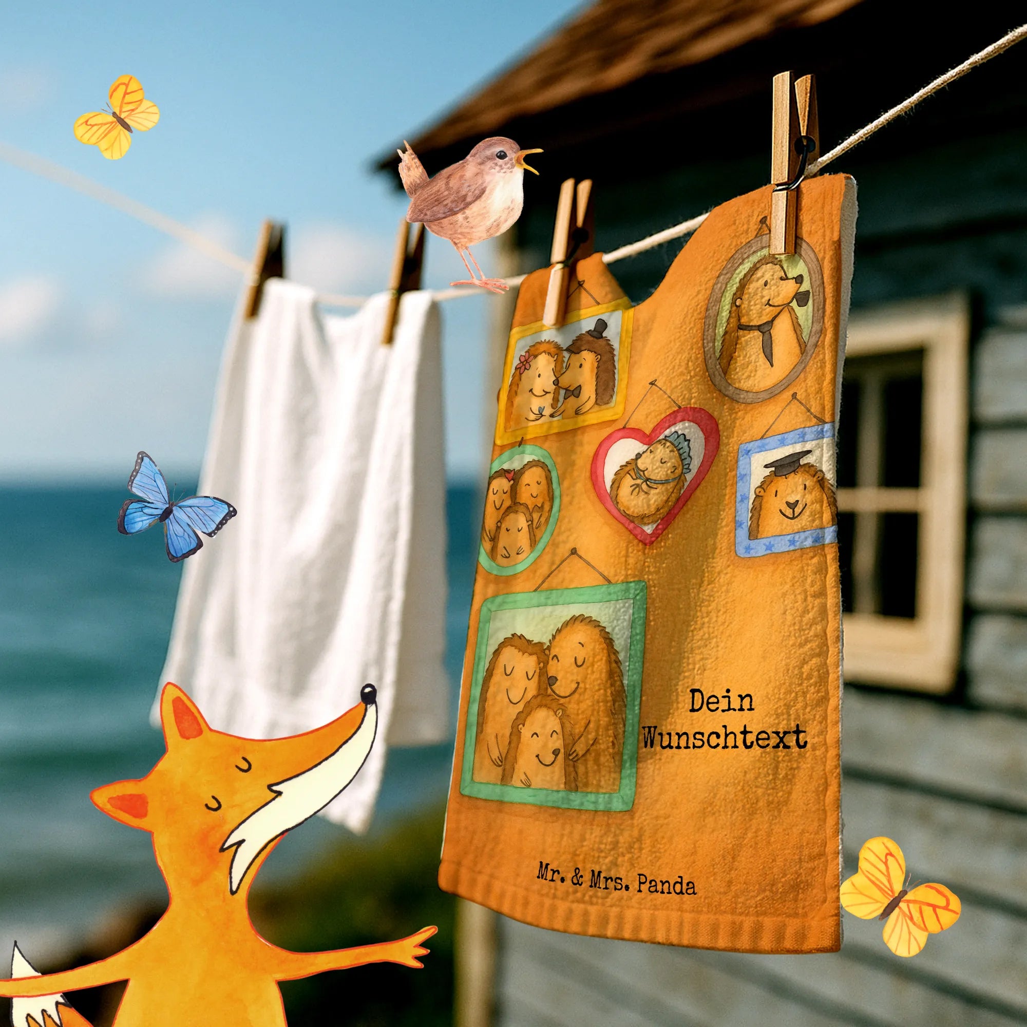 Handtuch mit Name Igel Familie Design