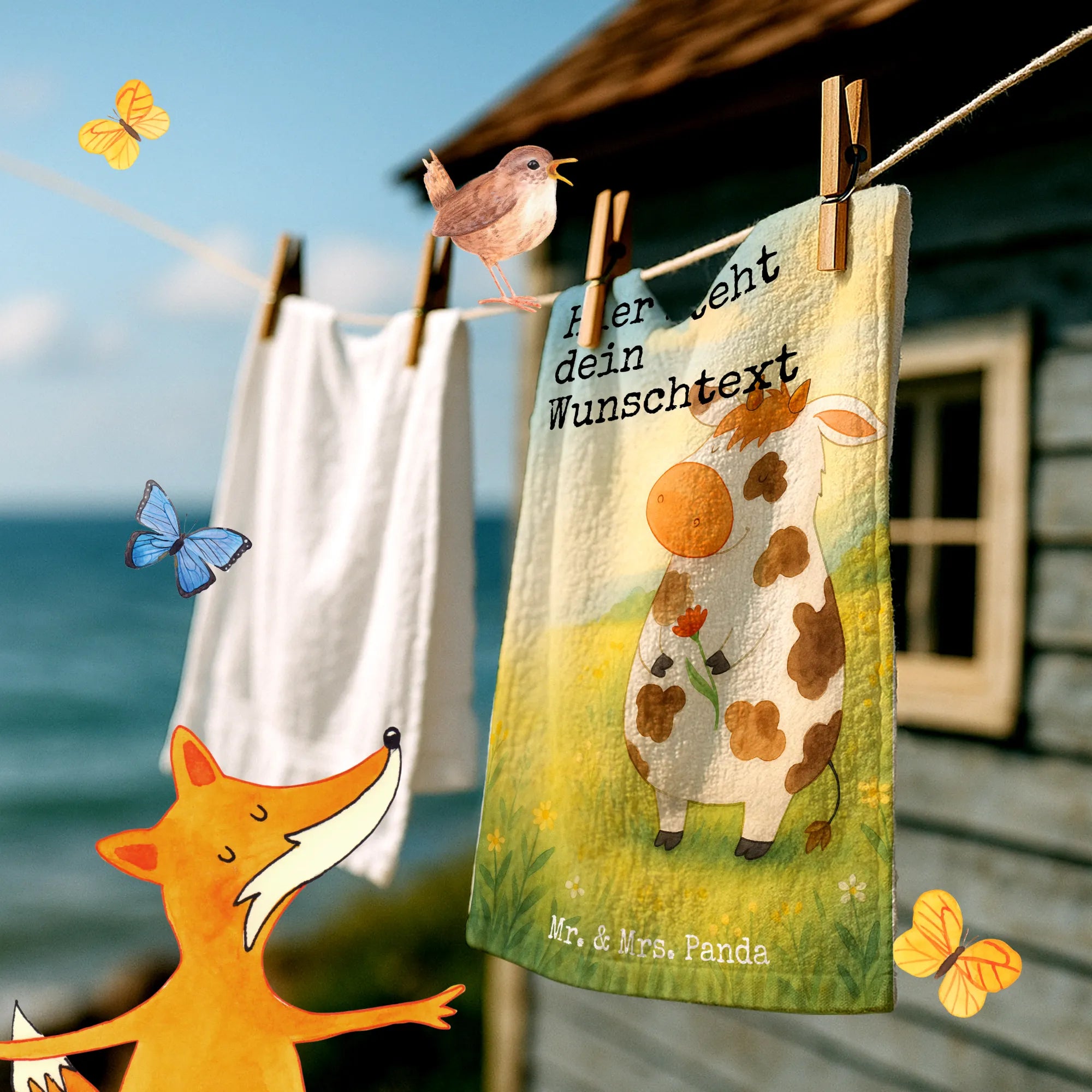Zauberhaftes Gästehandtuch „Kuh“ – personalisiert von Mr. & Mrs. Panda